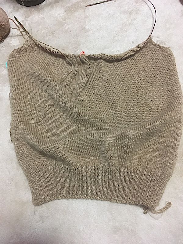 脇まであと半分になりました。ボットポアラのラブもセイカも柔らかくてふわふわ。シンプルなメリヤス編みで糸の良さがさらに引き立っているのでは?心配なのは、すでにラブが足りなくなりそうなこと。現在販売されていない糸なのでどうしようか?前身頃だけ別糸にしようかな?