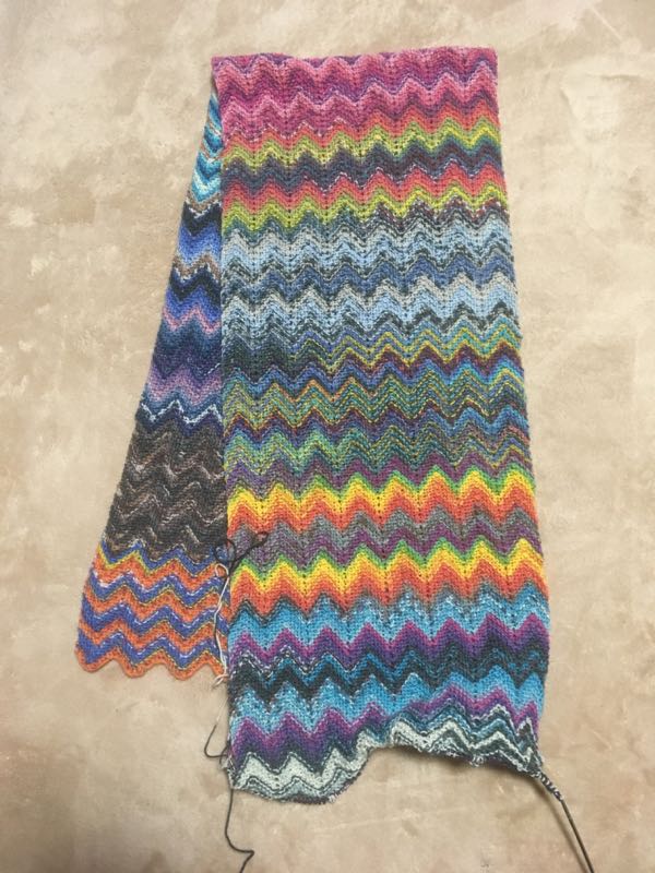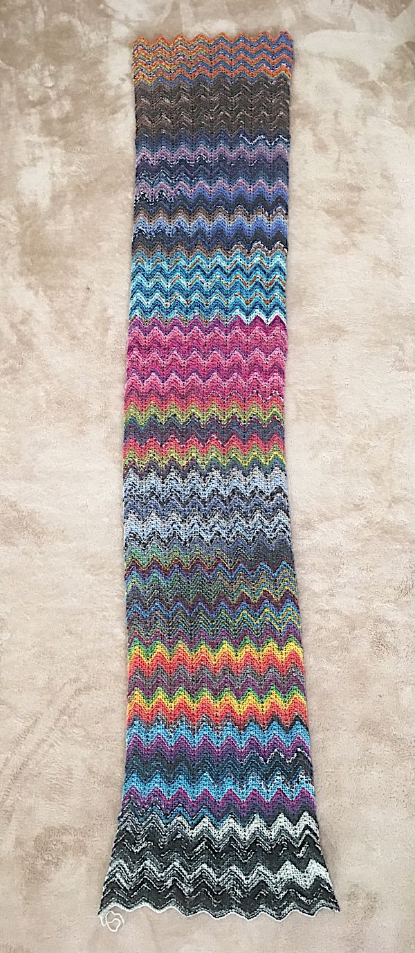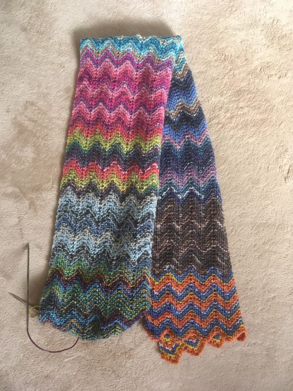 オパールのアドベントカレンダーの糸で編んでいたジグザグマフラー2本目、完成しました。 1本目といっしょに。2本目の方が色のコントラストがはっきりした感じです。幅が違うとまた色の出方がちがってくるかもしれないし、この糸、来年も発売されたら買いたいです。アドベントカレンダーは空っぽになりました。毛糸の在庫は年初が693玉先日1玉消費して692玉本日で3玉消費で689玉となりました。作品はマフラー1つ