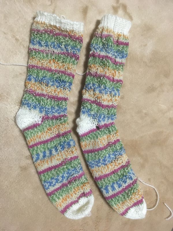靴下編みあがりました。履き口が今回は広すぎた(/_;)なかなか思うようになりませんね。今は水通ししてます。