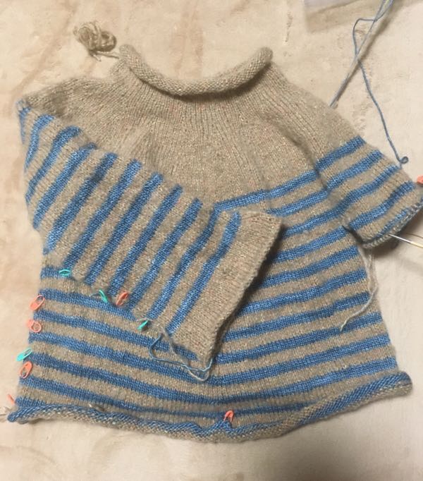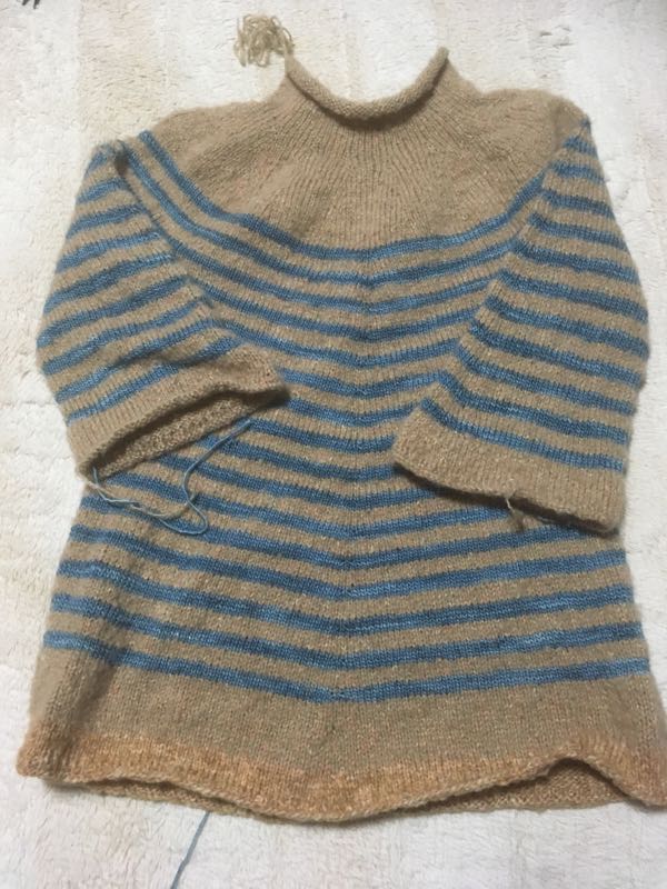 風工房さんの定番ニットからモザイク模様のセーター。 全ほどきして編み直し。 前回 今回。 今回は、ふわっとなった。 もう少しあんでみます。