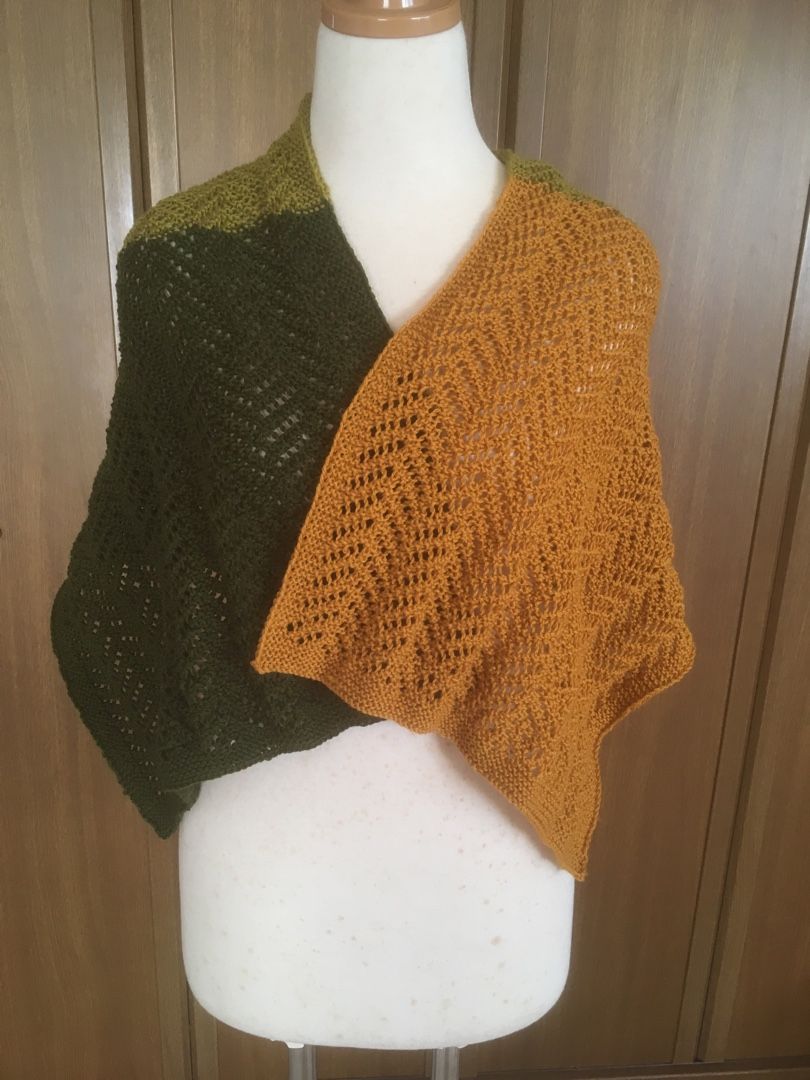 先日編んだ、嶋田俊之さんのヘリンボーンのひざかけを、水通ししました。左がbefore 右がafterです。 透かし編みがのびて、ちゃんとストールの長さになりました。マフラーとしてもゆったり結べます。 Utageで編んでいるショールはなぜか角がでているような編地になってます。これも水通ししたら伸びるのかな?コーン糸を使いきるまで編もうと思います。