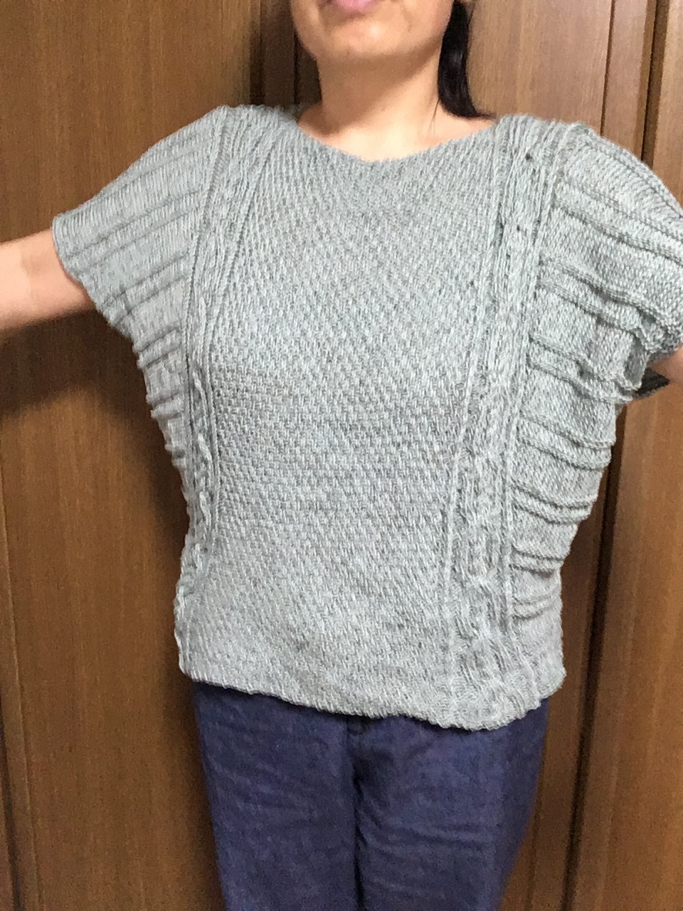 台形に編んで、いつのまにか袖ができるデザインで、