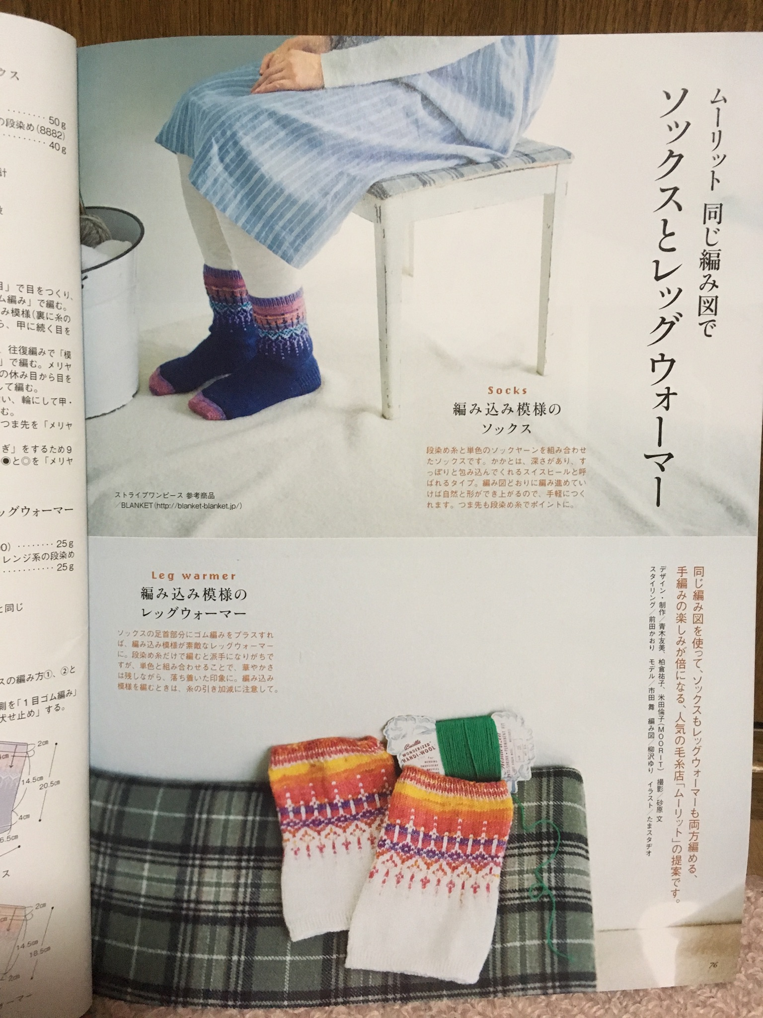 毛糸屋の「ムーリット」さんのソックスとレッグウォーマーが載ってて