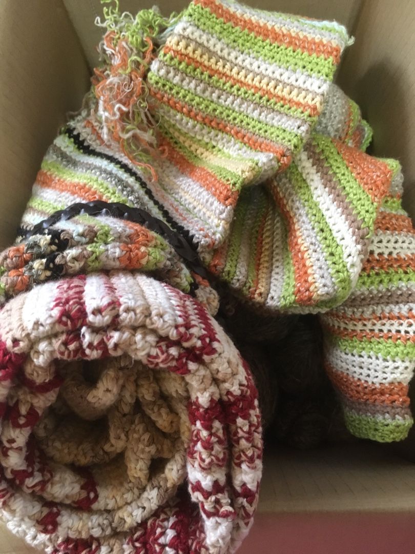 行き当たりばったり、解いた糸がなくなるとまた、解いて編みつないでます。