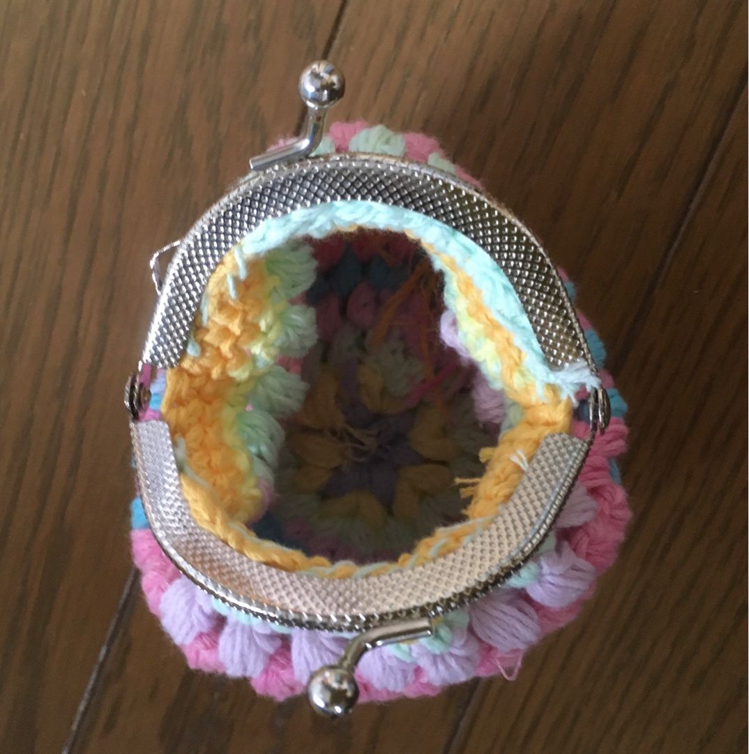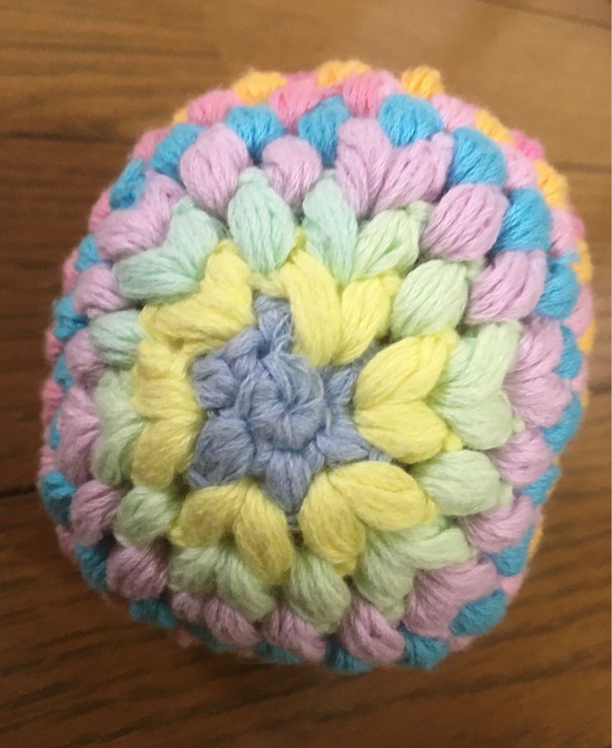 DAISOのパステルカラーの刺繍糸を2本どりで編みました。