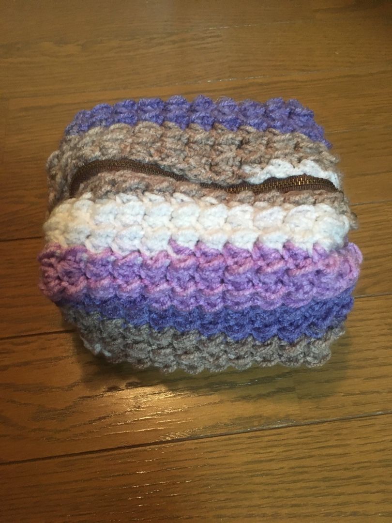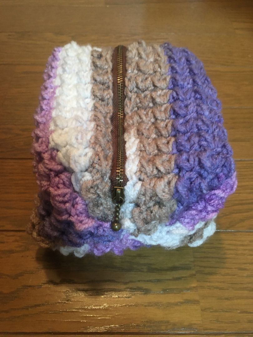 こちらの動画を見ながら、cakeでキャラメルポーチを編みました。