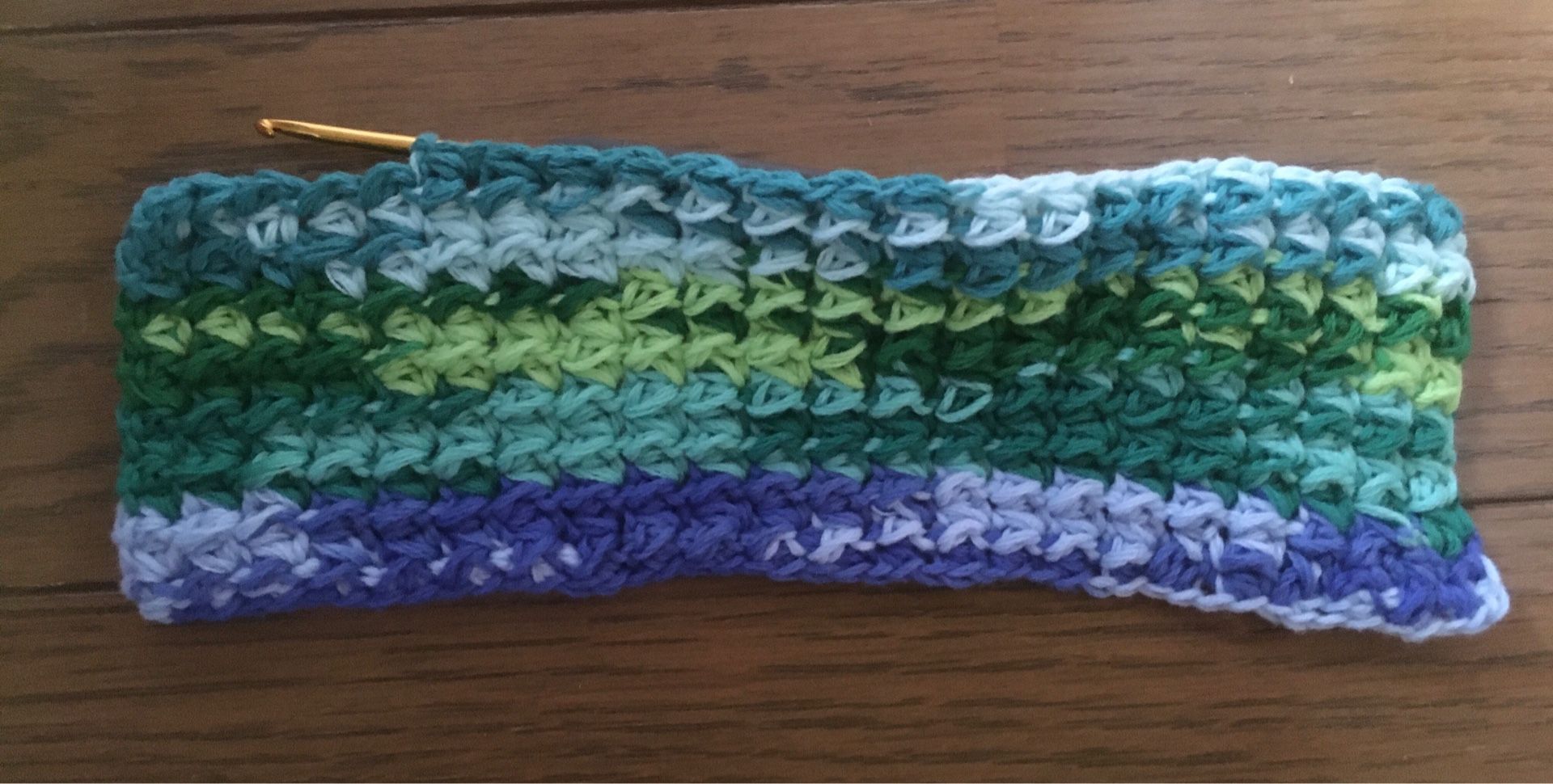 昨日のキャラメルポーチがまったく納得できない仕上がりだったので、糸を変えて編んでみることにしました。