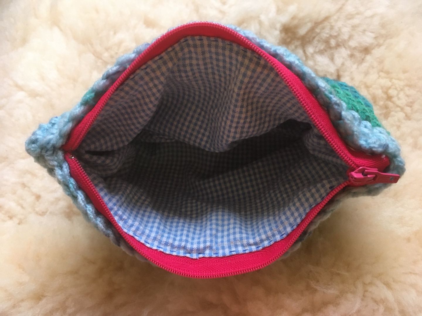 ファスナー はピンク。いつもの内布もつけてます。