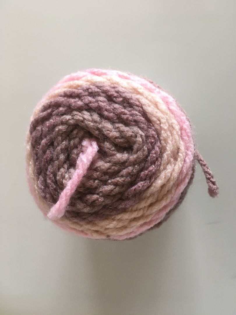 この、イチゴチョコみたいな100円ショップの毛糸cakeを使って、