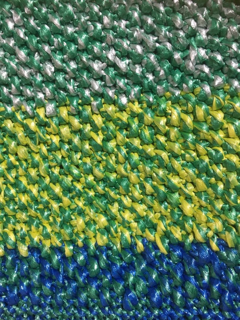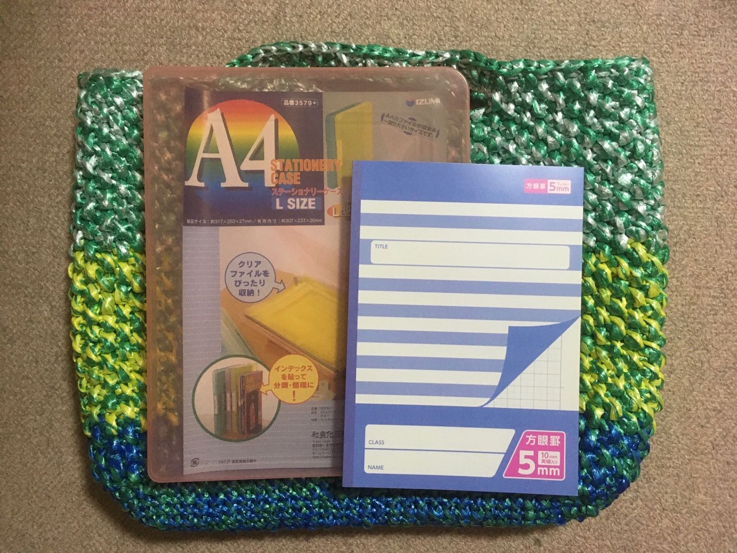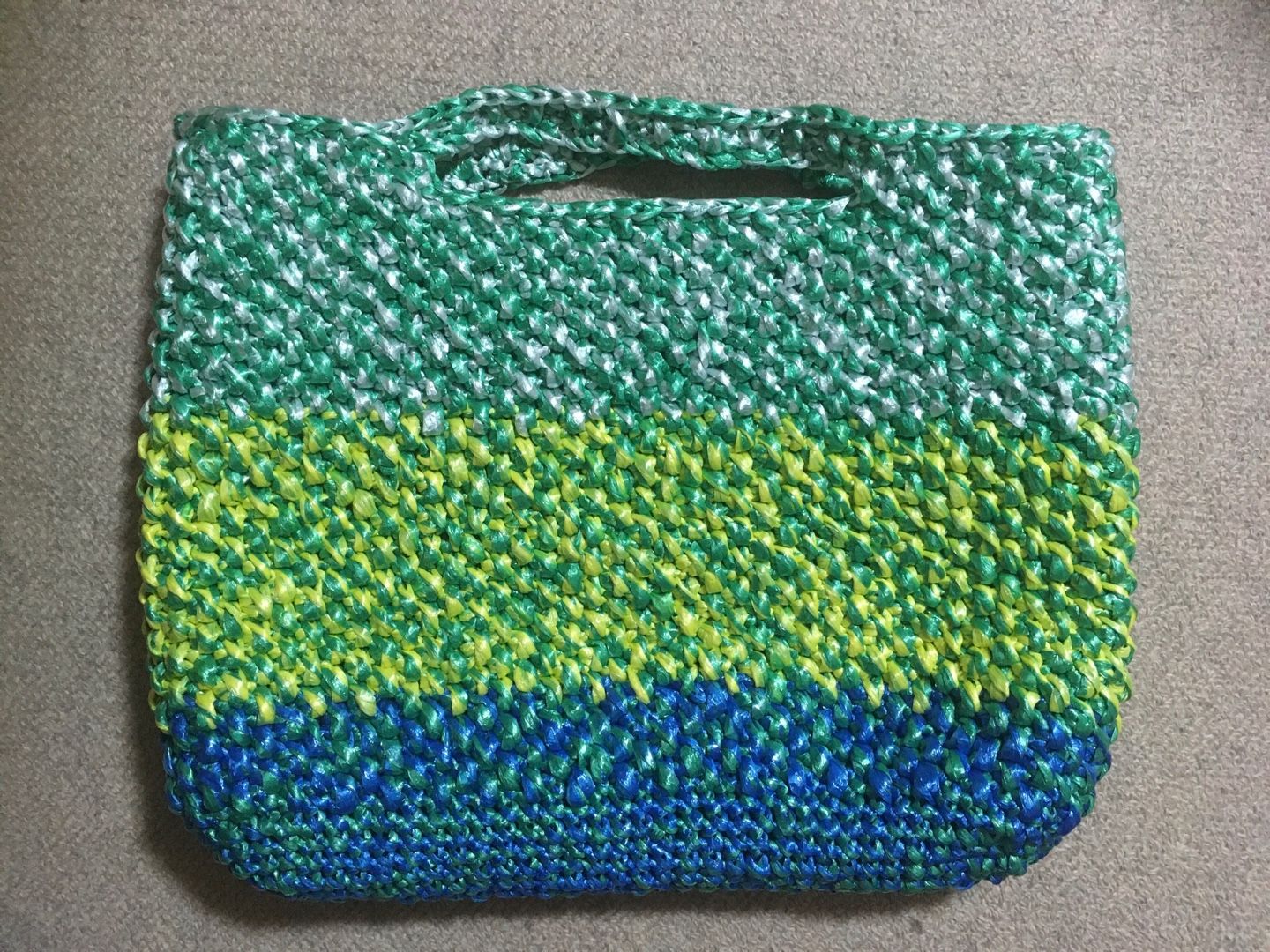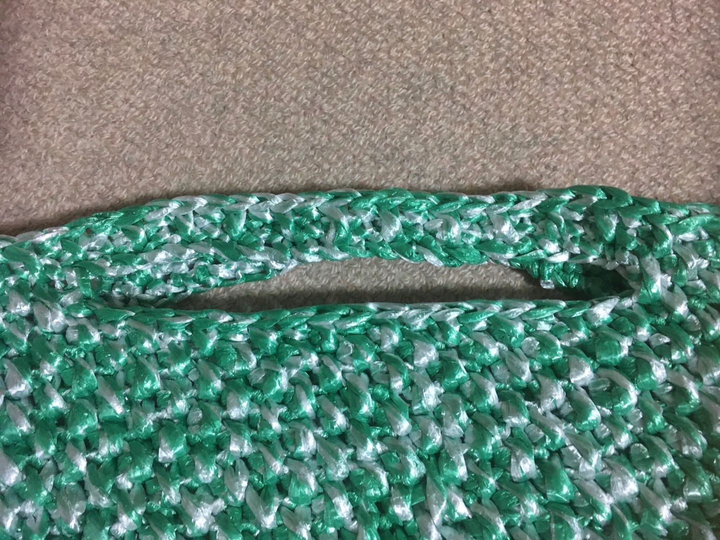 底は30目で長丸の底を編んで、側面の模様、持ち手はモコタロウさんの動画を真似しました。