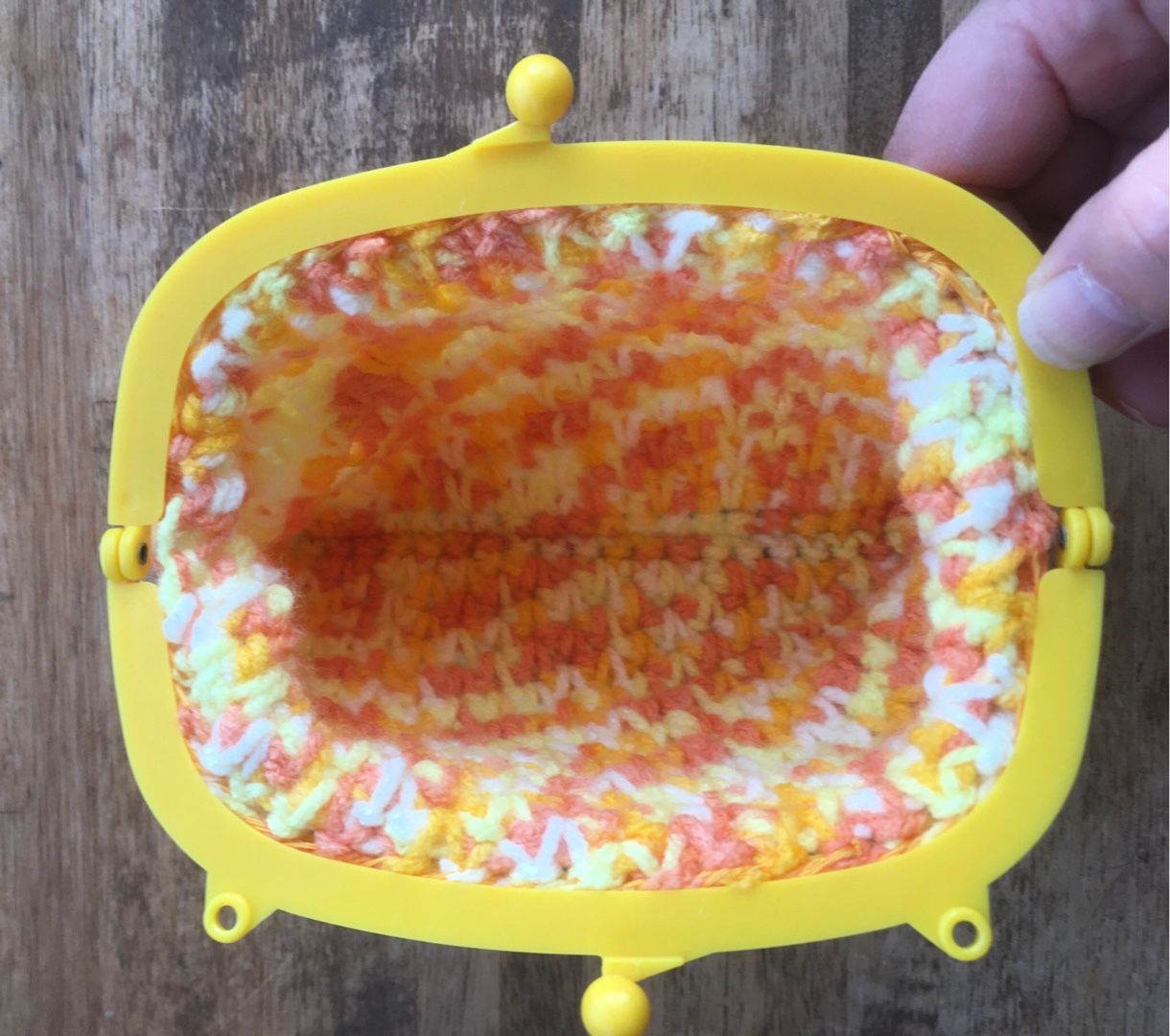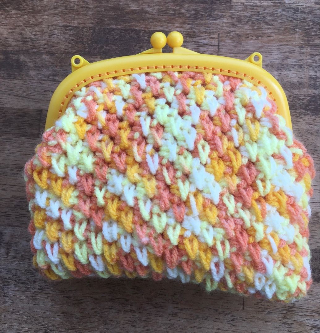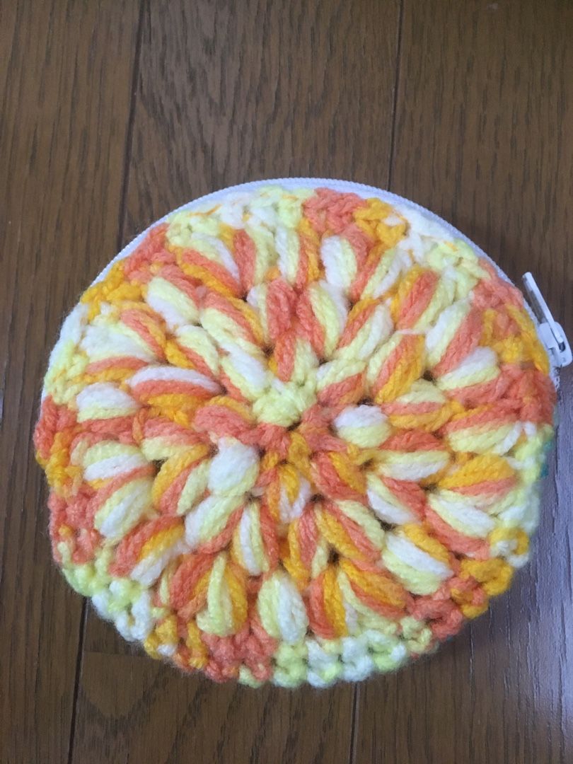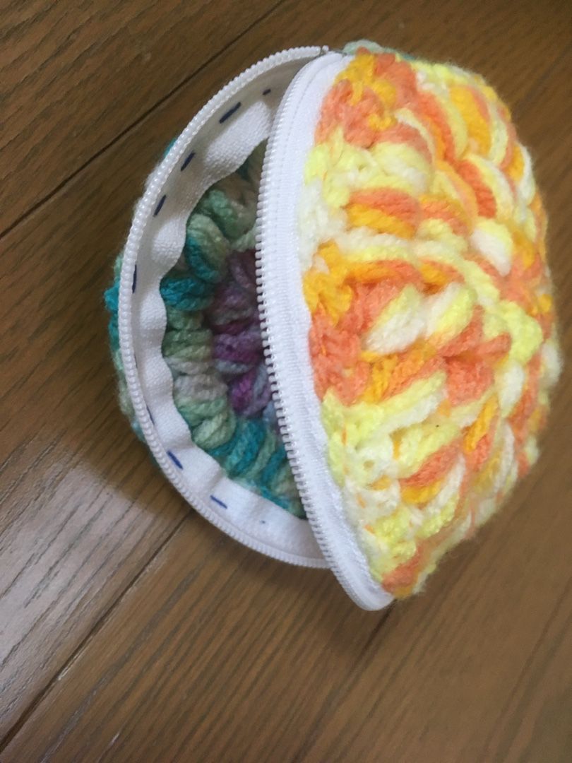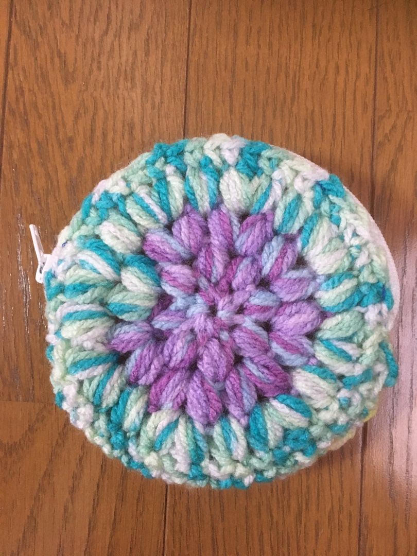 そして残り糸を使い、こんなファスナー ポーチを編みました。