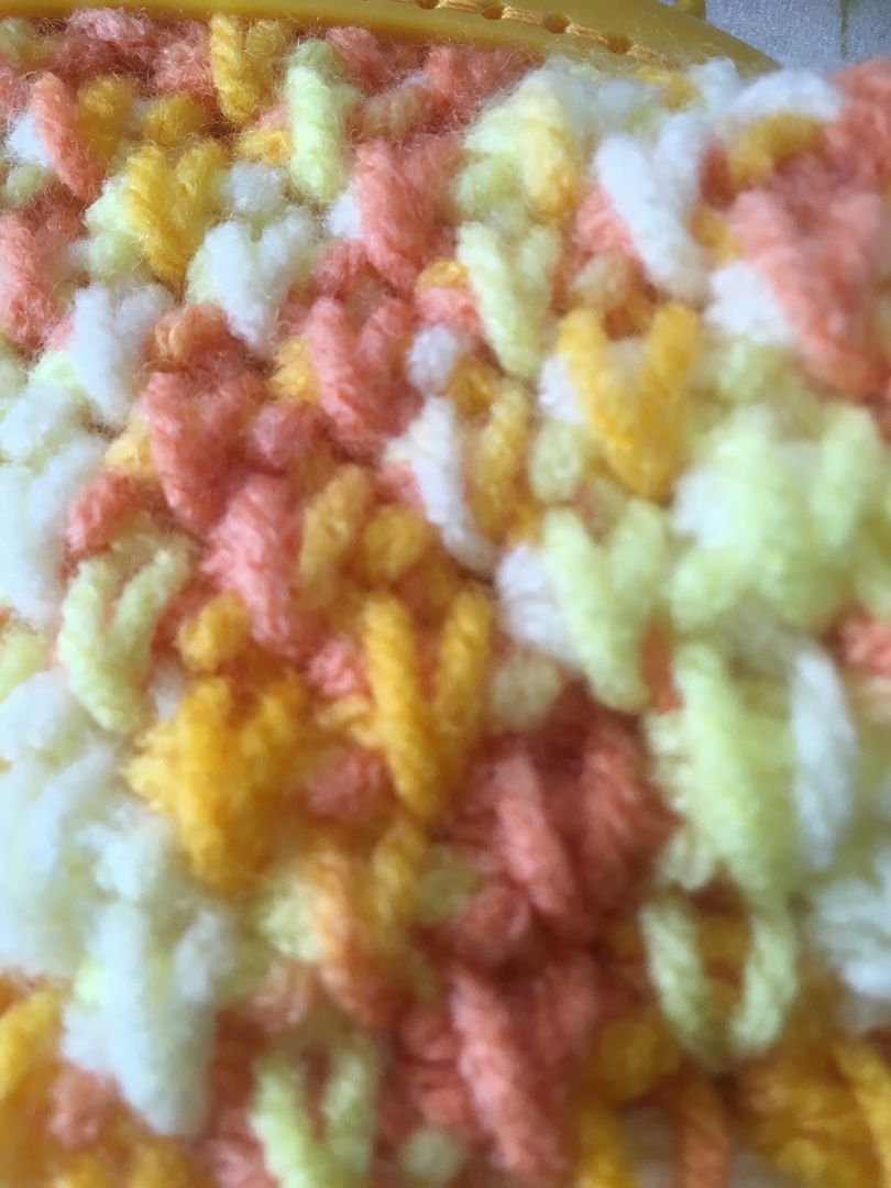 以前はアクリル毛糸なんて!と思っていたのですが、色もきれいでお手入れ簡単。かわいいし、最近はこれはこれでいいと思うようになりました。