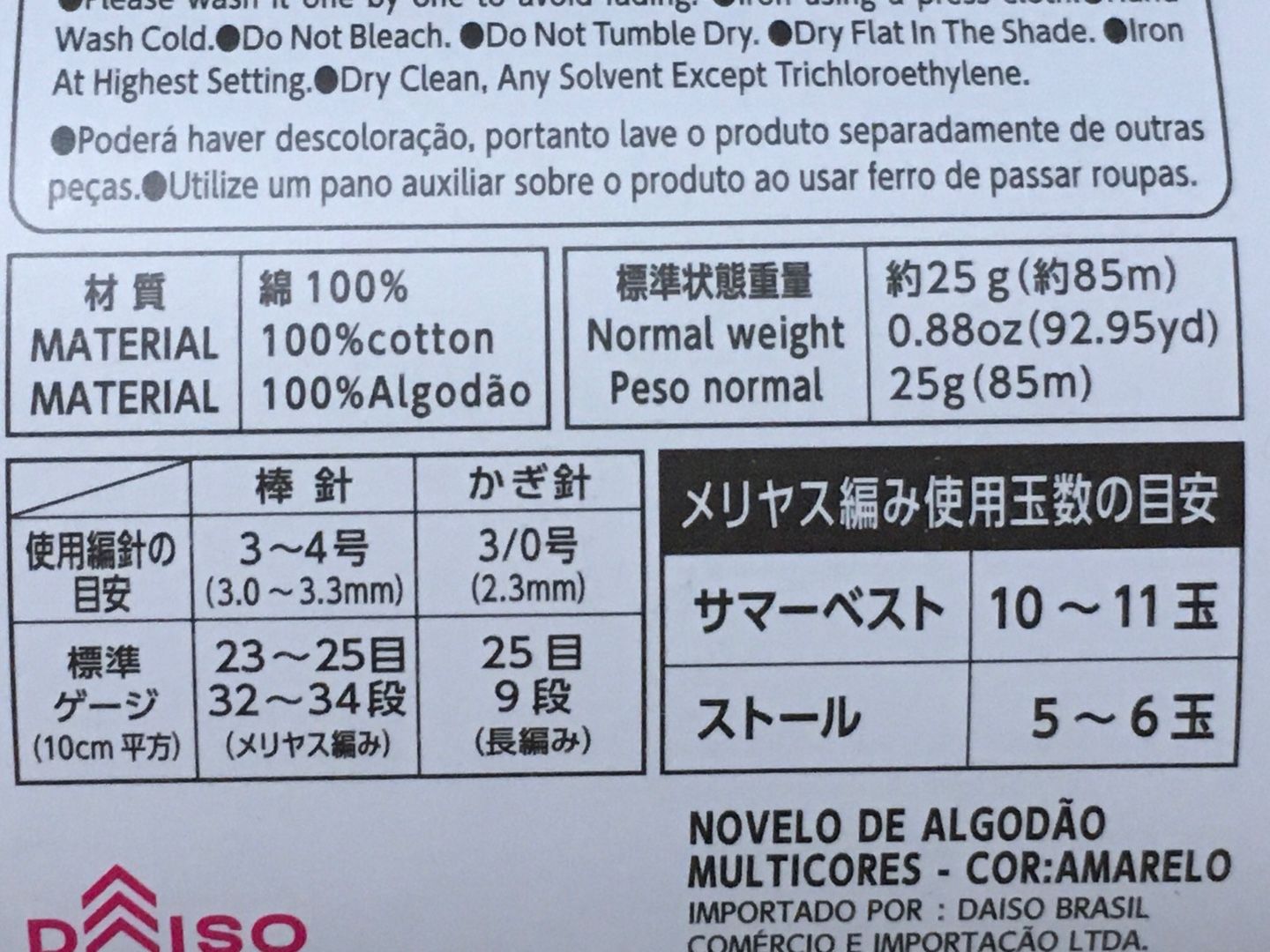 DAISOでこんなコットンヤーンを買いました。マルチカラーヤーンです。85m,