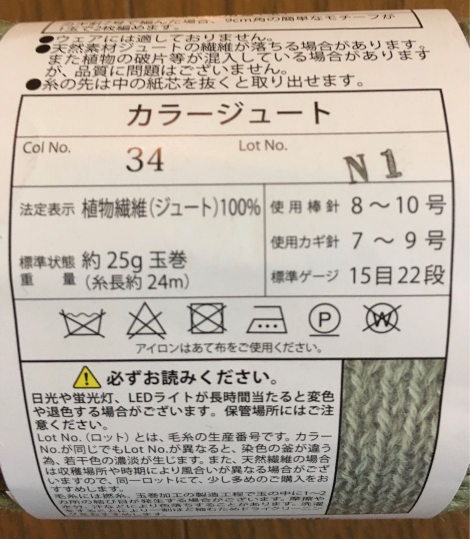 このジュート、そんなにかたくないので比較的編みやすいし、かわいい色も素敵です。ナチュラルがもう少しあれば上下にもう少し入れたかったな。