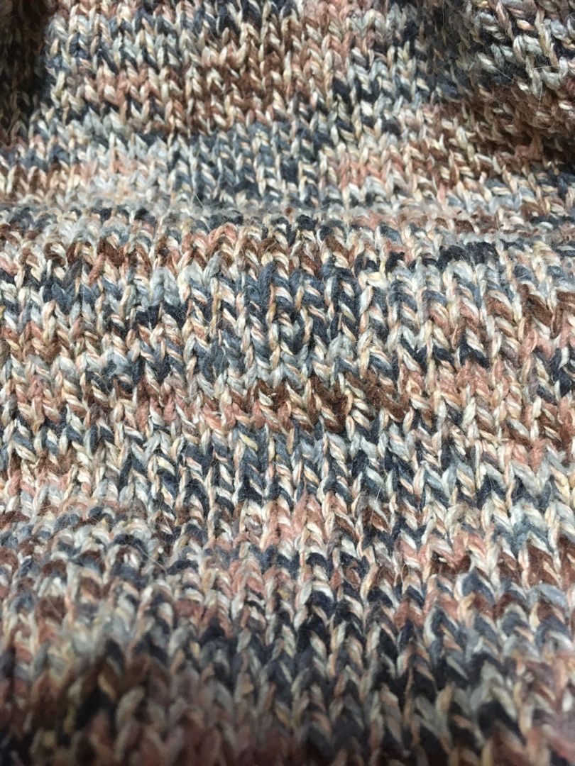 後ろ身頃を80段編んだところ。シンプルなメリヤスとカノコ編みのセーターになる予定です。