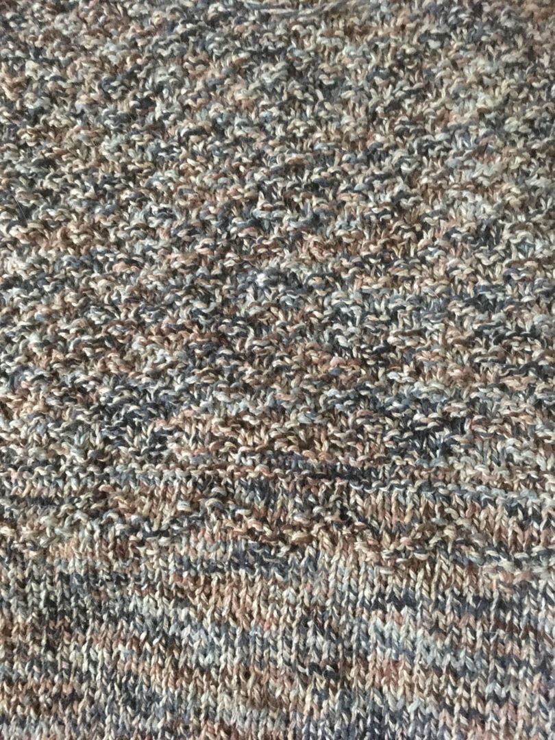 シルクハセガワさんのリュウセイツイードで編んでいるセーターの前身ごろ編み上がりました。