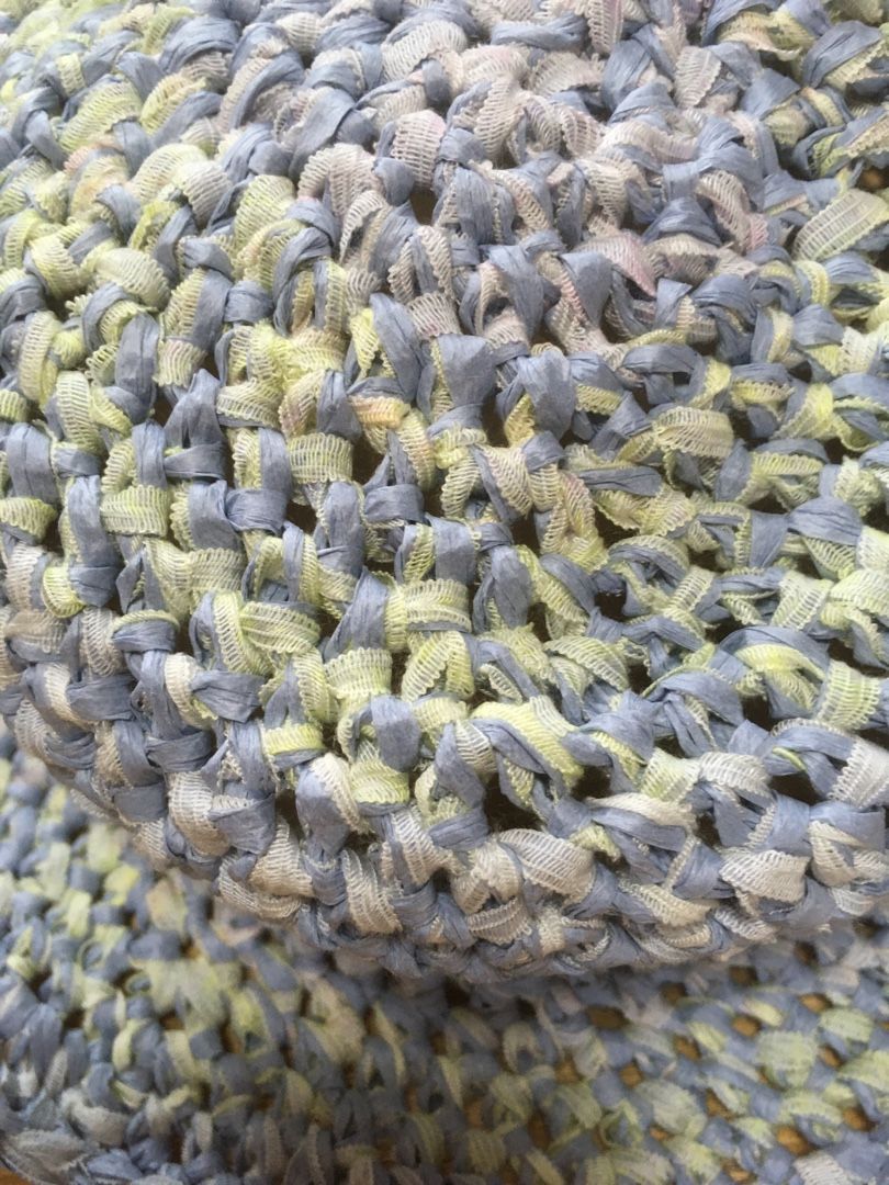 アフガン編みしようと買ったのですが、ペーパーニットヤーンが思った以上にしっかりしていたのでアフガン編みが難しく、期せずして帽子になりました。