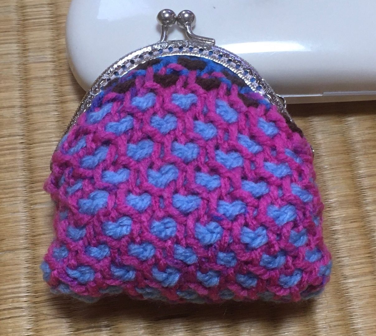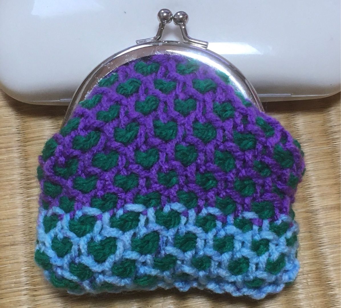ハマりまくってる、ダブルフックアフガンのかのこ編みで、がま口編みました。