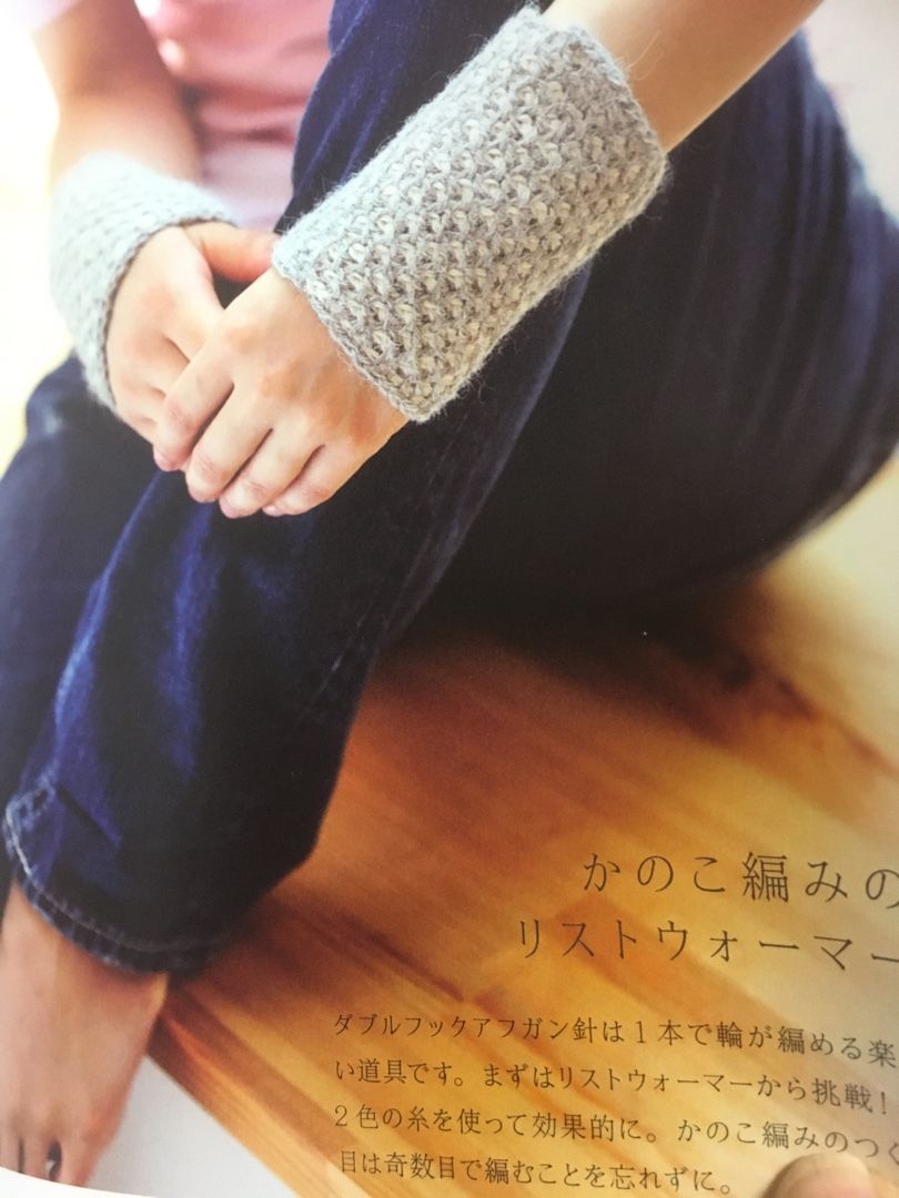 このかのこ編みのリストウォーマーの編み方を参考にしています。