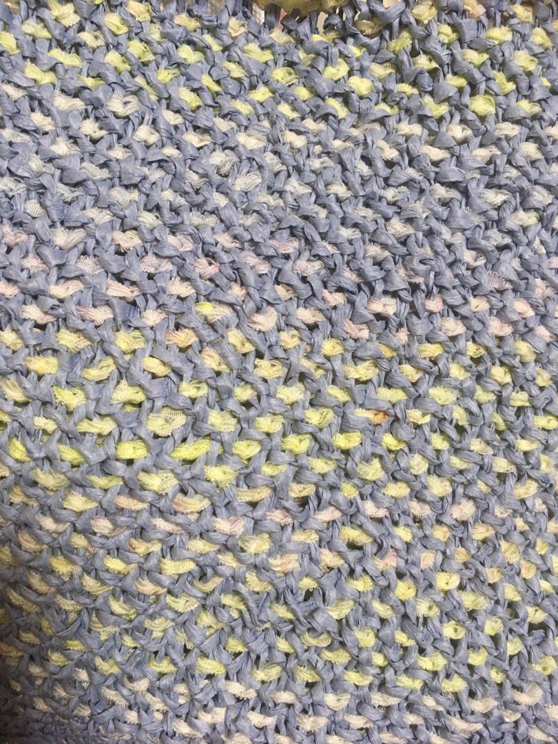 100円ショップ、キャンドゥで買ったペーパーヤーンとリボンヤーンを使ったダブルフックアフガンのバッグ。