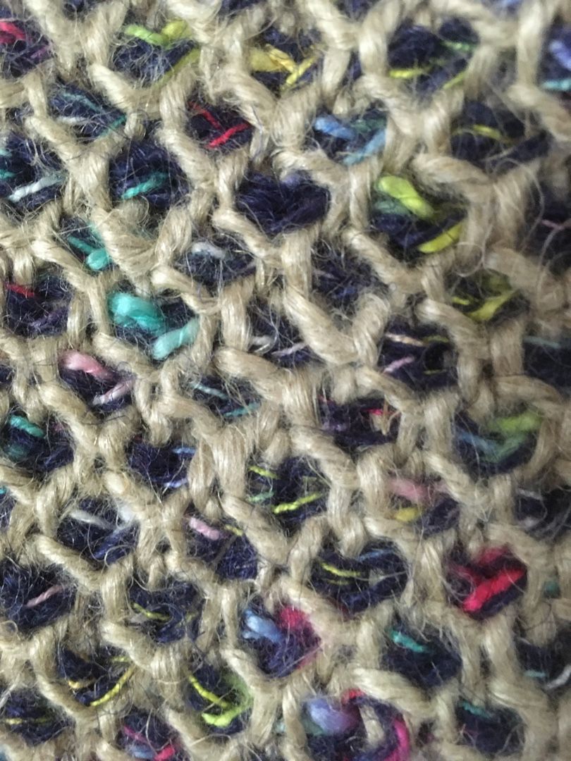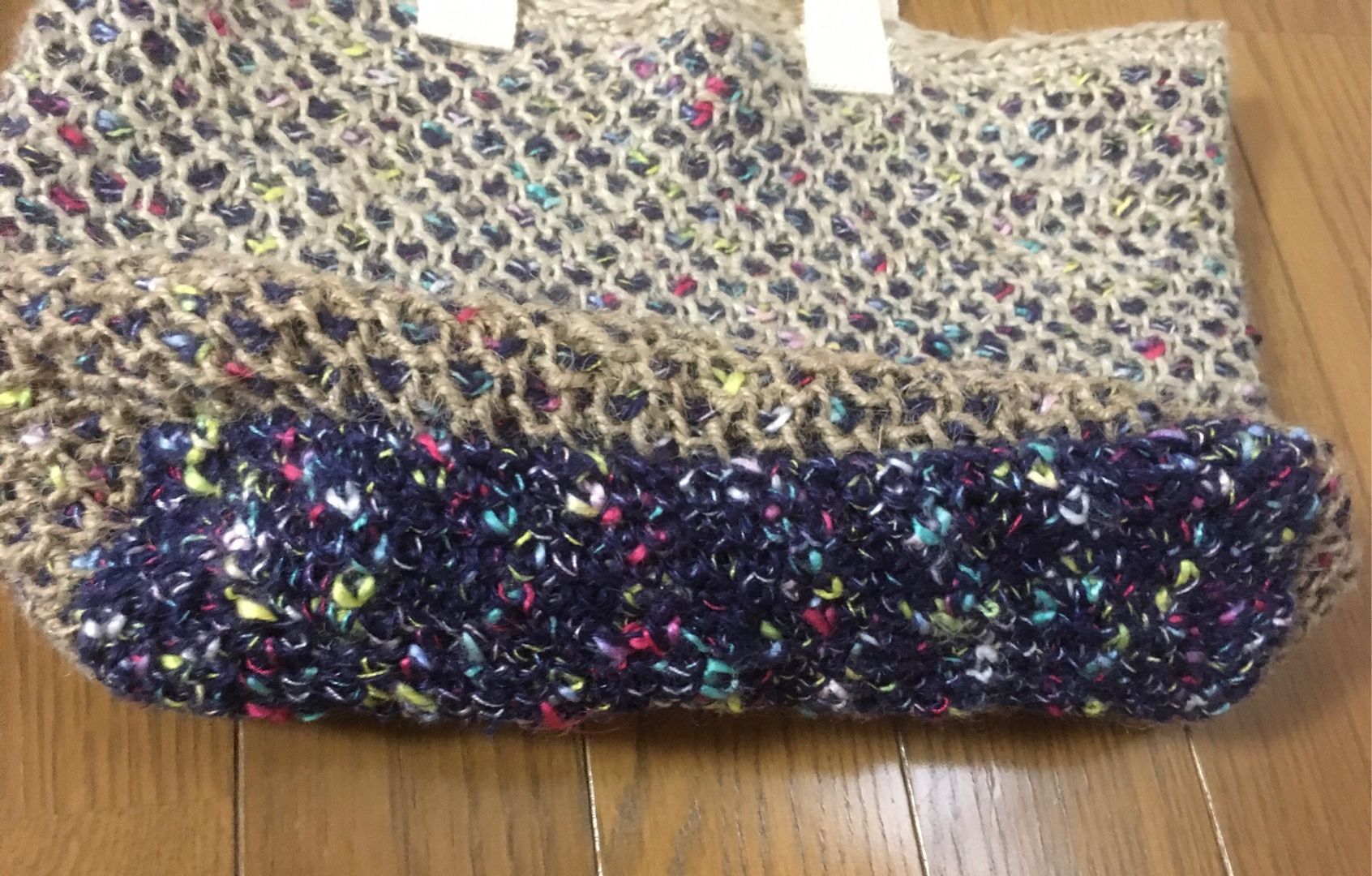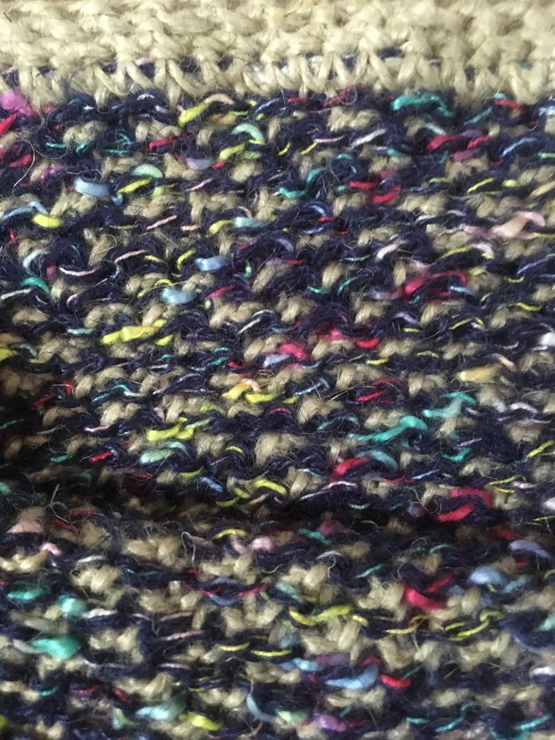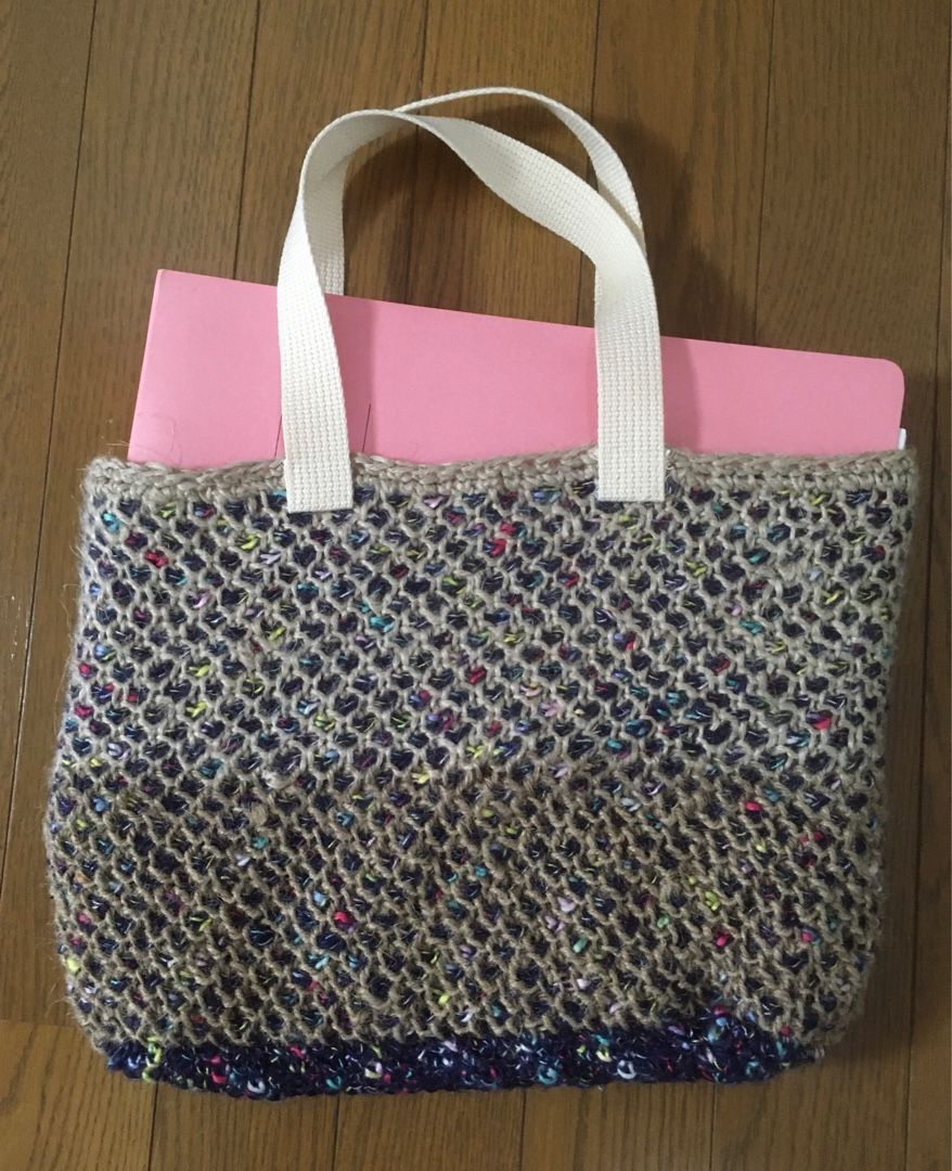ジュートや麻紐が残っていたので、ダブルフックアフガンのかのこ編みでトートバッグを編みました。