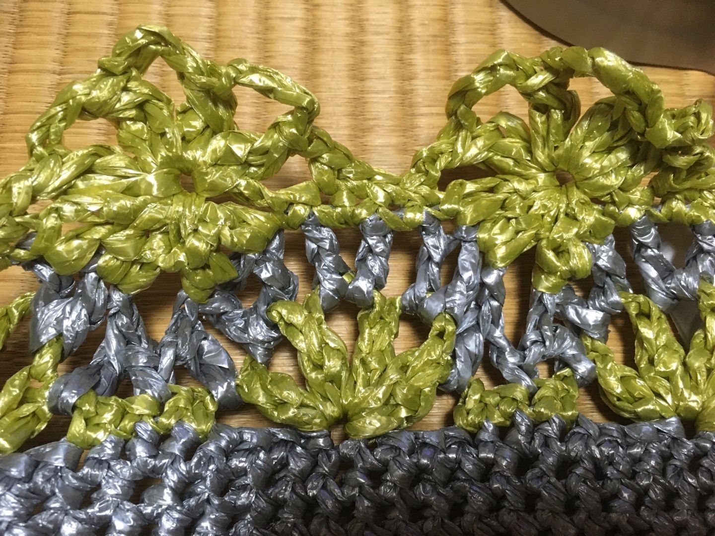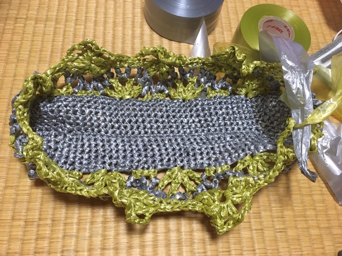 在庫のスズランテープのシルバーとゴールドで編み始め。