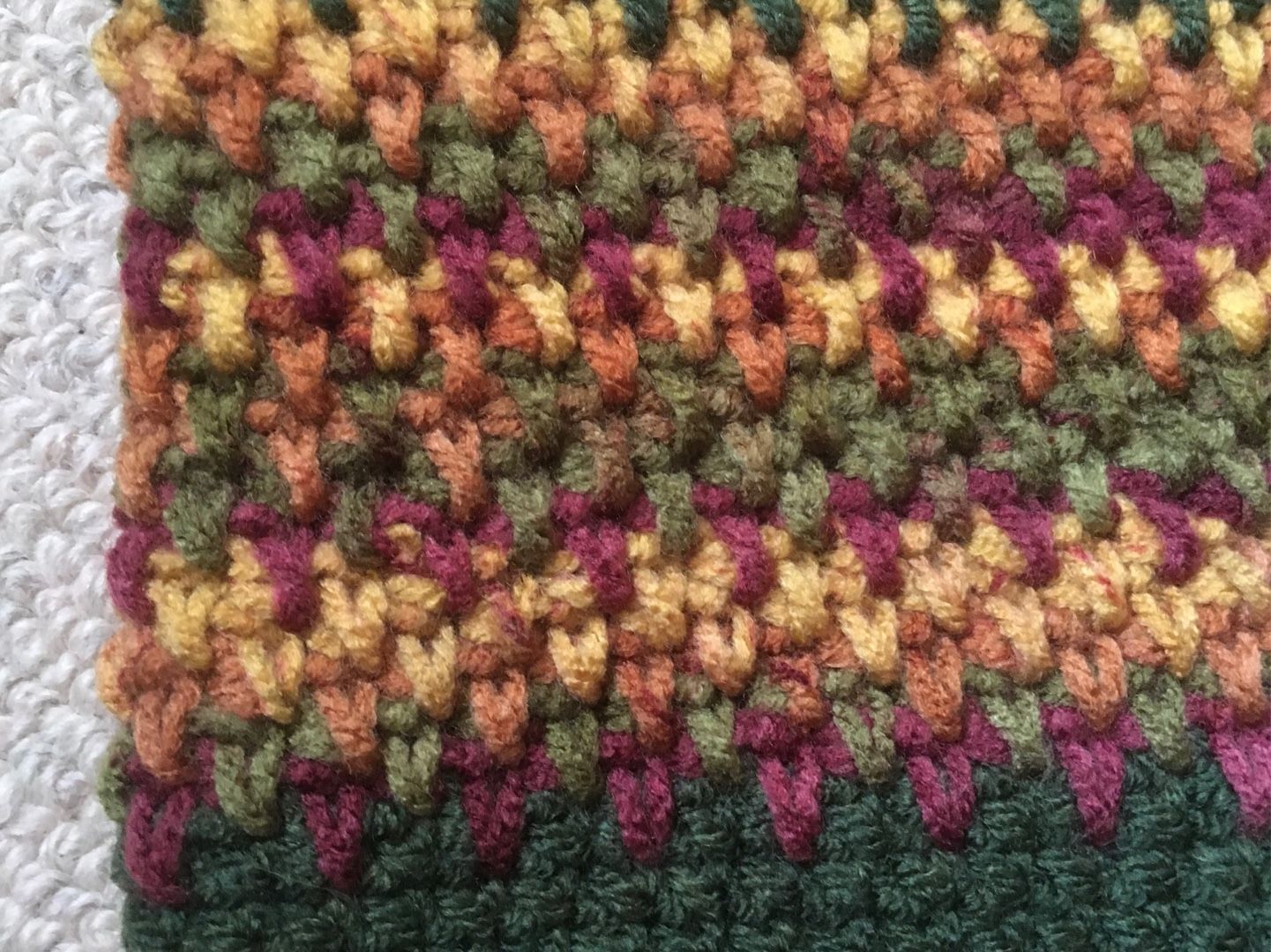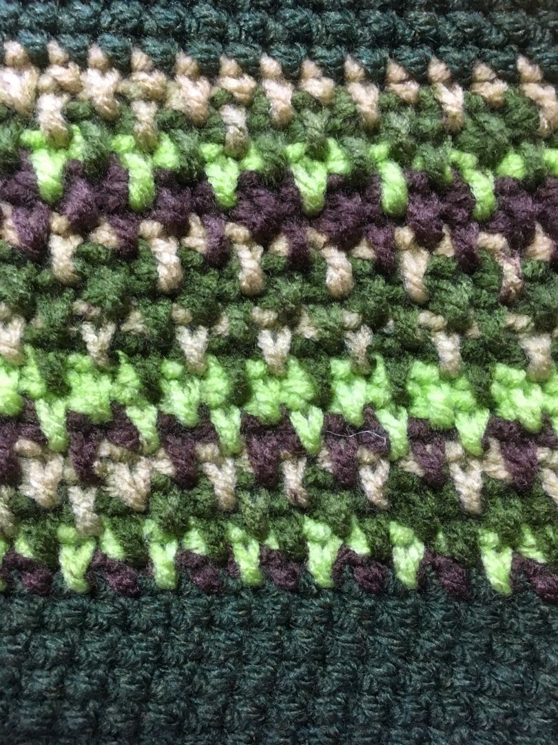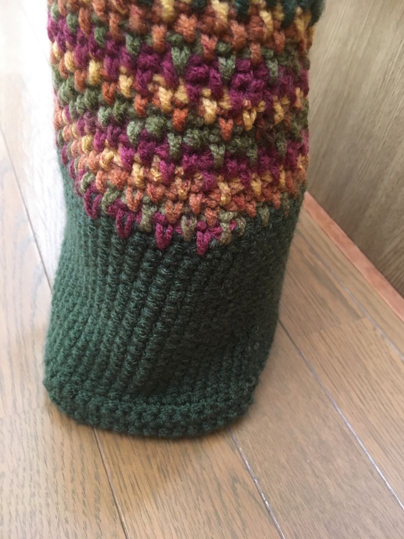 いっしょに使うのはメランジのカーキ。落ち着いたグリーンです。
