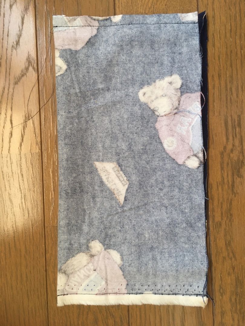 まず、半分に折って2カ所縫ってひっくり返して、入れ口にステッチ。