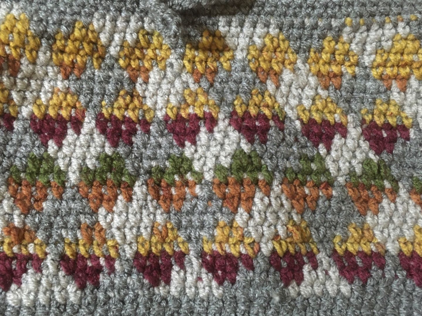 you tubeのLiLi nana さんのチェック柄のバッグを自己流で変更して編んでるバッグ、本体編み上がりました。