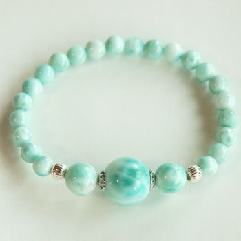 えー、これがラリマーのブレスレットでございます お写真即送ってくださってありがとうございました 大きさといい色目や模様といい、 自分のにしたいなーと思うくらいええ感じですねんね。 感想よかったらPLZ☆