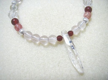 ご注文のオーダーブレスレット(その1)健康と精神の包容力アップ 物質的な余裕もでてくるようにあわせてみました。 トルマリン5A(オレンジ&グリーン) ローズクォーツ3A ガーネット 水晶 ルチルクォーツ フローライト入り水晶 (細長いビーズがそれ)これはクリエイティブな面をUPするブレスレットとして 作ってみました。 スターローズクォーツ5A ペリドット(緑) トルマリン5A(黄色) レッドルチル(ゲーサイト入り水晶) カット水晶