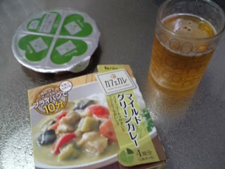 ヾ(*′○`)゚.+:。゚☆こんばんわぁ~☆ 今日も台風の影響で、ひきこもりの、は~ちゃん一家です・・でも、お昼前、買い出しに行くじょ~~~~~~ファイト━━(ノ゚д゚)人(゚Д゚ )ノ━━!!と、一人で、近くのスーパーに、行ってはみたものの・・突風に、吹き飛ばされそうになって、転ばなくてよかったと、胸をなでおろしていますホッ(o-∀-))あそこで、転んでいたらと、思うと、ゾッとする・・無理したら、駄目ですね(*´・д・)*´。_。)ゥミュ脊損の怖さ、よくわかってるはずなのに・・これからは、台風情報には、もう少し敏感になり、買い物など、行動しなくては(・∀・)ウン!!さて、今夜は、その戦利品の一部゚+。ゥフフ(o-艸-o)ゥフフ。+゚ひで君も、私も、大好きな『グリーンカレー』♪どうやら、フライパン一つで、簡単にできちゃうそうです゚+。(ノ`・Д・)ノオォオォ。+゚材料は、たったコレだけ(*`ロ´ノ)ノ鶏もも肉、茄子、パプリカ・・あと、お水と、牛乳が、必要ですφ(・ェ・o)メモメモ写真の、ビールは、使用しません・・ただの、キッチンドリンカー、あしからず(笑)てかさ、沖縄って、鶏もも肉の『スライス』って、普通に売ってるんだよね(*・`o´・*)ホ―どんなお料理に、使われるのかしら(´・ω・`)モキュ?あとで、調べてみることに、しましょ・・まずは、材料を、炒めていきます・・強火で、かつ、焦げないよう5分程度、だそうです(´▽`*)炒まったら、一度火を止め、ルゥとお水を、溶けるまで混ぜ合わせ・・沸騰して、とろみがついたら、牛乳を入れます(o-∀-)b))そぅそぅあとは、2分ほど、煮込むだけ!!工エエェェ(´゚д゚`)ェェエエ工そんな、簡単に、グリーンカレーが、できちゃうの????それが、できちゃいました・・ミモザサラダと、オリオンビールで、カンパ─(*´ω`)o∪☆∪o(´ω`*)─イあと、副菜には、どうしても食べたくなった、おふくろの味・・厚揚げと小松菜の煮付けです( *´艸`)こちらの、食べ物は、油濃いものが多いので・・我が家、煮物は、かかさず、ですね(´>∀