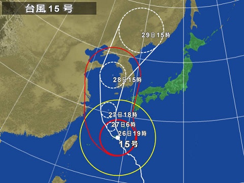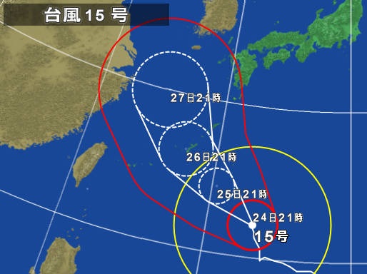 ヾ(*′○`)゚.+:。゚☆こんばんわぁ~☆ 今日は、1日強風で・・週末は、台風15号が、やってきて、外出は、きっと、できないから(゚∀゚ ;)タラーお洗濯、出来るものは、みぃ~んなして・・買い出しへ、行ってきましたε=ε=ε=┌(o゚ェ゚)┘そして、今夜も、お洗濯回して、ランタン、お水を確保して、備えてます・・『台風15号』Yahoo!より、2012年8月24日22時30分発表 大型で非常に強い台風第15号は、24日21時には沖ノ鳥島近海にあって、北北西へ毎時15kmで進んでいます。中心気圧は940hPa、中心付近の最大風速は45m/sです。この台風は、25日21時には南大東島の南南西約200kmに達する見込みです。26日21時には那覇市の北西約30kmに達するでしょう。27日21時には東シナ海に達する見込みです。台風周辺海域および進路にあたる海域は大しけに、台風の進路にあたる地域は暴風や大雨に厳重な警戒が必要です。なかなか、遅い速度で、本島へ、襲ってきそうです((( ;゚Д゚)))ブルブル今夜から、不安な週末の、始まりになりそう・・そして、身体も、めちゃ、悲鳴あげてます。゚(PД`q。)゚。台風情報には、みなさんも、気を付けて、乗り切りましょうねぇ・・ヽ(☆・ω・)**+:。.。:+*Вчё~あんしぇや~Вчё*+:。.。:+**(・ω・★)ノランキング挑戦してます・・もし、よかったら↓↓↓の、『わんこの写真』を、クリック願いします(^~^)ノ凸ポチ