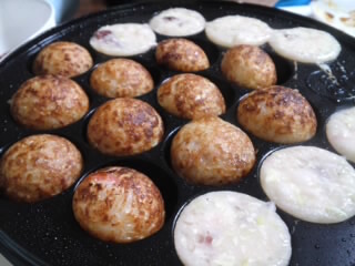 ヾ(*′○`)゚.+:。゚☆こんばんわぁ~☆今日も、お天気、イマイチだった、沖縄です(´・艸`・)あらら 今夜は、沖縄・初たこ焼き・・ひで君は、東京出身(・∀・)ウン!!は~ちゃん♪大阪出身・・一家に一台、たこ焼き器は、当たり前なんです(*'∀'人)ワォ☆ひで君は、お家たこ焼き、食べた事がないんですって・・へぇ~~~~~~~~~Ωヾ(´ェ`*)ヘェヘェヘェ早速、たこ焼き器一式を、購入してきた、私・・てか、沖縄って、たこ焼き器、売ってるのに、たこ焼き粉、売ってないしっ(´゚Д゚`)ンマッ!!でも、メリケン粉に、だし汁、山芋で、タネ作り・・なんとか、形になりました~~~~~ワァ──o(。´・∀・`。)o──ィ♪ひで君てば、初めて食べる、お家たこ焼きに、ハフハフ・・外側カリカリ、中身トロトロに、感動。・゚・(ノД`)・゚・。「いくらでも、食べたれちゃうよ(*´゚艸゚`*)まぃぅ~♪」そうでしょ、そうでしょ・・売ってる、たこ焼きも、美味しいけど、、やっぱり、大阪のお家たこ焼きは、ちゃうねん♪お好み焼にせよ、焼きそばにせよ、たこ焼きもさ・・やっぱり、大阪お家ものは、違うでしょ(ノ∀\*)キャハ焼きながら、食べる、アツアツの粉もん・・ひで君が、好きになってくれて、本当によかった♪これから、いつか、月島名物の、もんじゃも、今度食べさせてね( *´艸`)ランキング挑戦してます・・もし、よかったら↓↓↓の、『わんこの写真』を、クリック願いします(^~^)ノ凸ポチヽ(☆・ω・)**+:。.。:+*Вчё~あんしぇや~Вчё*+:。.。:+**(・ω・★)ノ