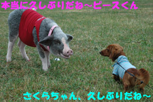 朝からデジカメ片手に車で奥さんとピースを連れて海とふれあい広場に行きました(^。^)いつもは混んでいない駐車場に車がかなり・・・?マイクで話す声も聞こえて来ました(・_・")?すごいテントの数。広場に着くとフリスビー犬の大会をやってました。大型犬が飼い主の投げたフリスビーをくわえて戻ってきて得点を争うみたいです。すごい飼い主さんたちの気合いが・・・( ゜_゜;)しばらく眺めてから芝生の散歩をしてました。今回はダックスが少なく別の小型犬たちと遊んでました。そして帰るつもりでまたフリスビー犬の大会をしばらく眺めて駐車場に向いました(^ ^)トイレ休憩をしていると後ろを振り向くとダックス君が二匹来ていました。一匹の子を見て(-_ ゞゴシゴシ???体がデカイ。今まで見たダックスでは最高クラス。思わずデカッって行ってしまい飼い主さんたちも笑ってました。聞いてみると10キロの体重・・・。すごい体をしてました(^ ^)ピースもお友達感覚で遊んでいたのでしばらく話しをしてました。もう一匹の子は小型なのにこの子だけデカイということらしいです。そして別れたんですが体がデカイので走れないらしくてノシノシ歩いて散歩していました(o^^o)今回は楽しく散歩できました。