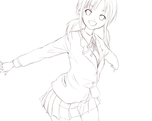 ラフって大体の線をつかんでるけど、下描きが問題。少し線画違っただけで印象も全て変わってしまうから・・・それっぽくは描けるでもそれをしっかりとした線にもってくるのが難しい><ほんとに難しい・・・よかったら励ましで応援してもらえると嬉しいです♪