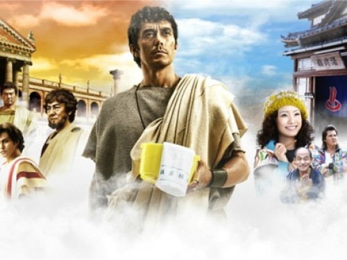 する事が山積みなんだけど、公開も終了しちゃうから急いで観に行って来た。 監督監督/武内英樹 出演/阿部寛、上戸彩、北村一輝、市村正親、宍戸開他 「昔=ソース顔、今=濃い顔族」 原作マンガの映画化らしい。 いやぁ〜濃かったね。俳優陣。 古代ローマ帝国のテルマエ(大衆浴場)技師、ルシウス(阿部寛)は デザインがもう古くさいと言われて仕事が激減。 なんとか斬新なアイデアを・・と考えあぐねていたとき、 湯船の中で渦巻きに巻き込まれ、タイムスリップ 行き着いたのは、現代の日本の銭湯だった。 目に映るもの全てが斬新で驚きの連続。 衣類を入れるカゴ、扇風機、ケロヨンの桶、フルーツ牛乳・・ またローマに舞い戻った後、彼は見たものをヒントに浴場を創り上げる。 それが大ヒット。ローマ中で大評判となる。 2度目のタイムスリップは、再び現代の日本、 だが今度は一般家庭の浴槽の中だった。 このときは、シャワーとシャワーキャップに感銘を受ける。 そして、これらは大衆浴場を嫌うローマのある老人のために役立ち、 またまた大評判となる。 瞬く間にテルマエ技師として有名になったルシウスはある日、 皇帝ハドリアヌス(市村正親)に呼び出され・・・ーーーーーーーーーーーーーーーーーーーーーーーーーーーーーーー 皇帝ハドリアヌスが暴君として怖れられていた時代。 暴君のまま抹殺されるか神格化されるかというギリギリの瀬戸際。 テルマエ技師ルシウスの風呂が歴史を変える ルシウスは日本人を「平たい顔族」と呼ぶ。 この作品は、あの三谷幸喜作品とはまた違うジャンルの笑いだ。 三谷ギャグは、どちらかと言うとねちっこい感じで、 この武内ギャグはどこかカラッとしてる吉本新喜劇タイプかな。 ルシウスが溺れる設定で、トイレの中で人形が渦に巻き込まれるとこは すご〜くチープで笑えるんだけど、でもあのシーンはあった方がいい。 真美(上戸彩)とのラブロマンスは、観終わってもどうも印象が薄い。 たぶん、このストーリーにはあまり重要でなかったのかもしれない。 まぁ彩ちゃんのイメージって、過去のドラマにしても携帯のCMにしても 明るく元気なコメディタッチだものね。 皇帝役の市村さん、沢村さん、宍戸さん、イタリア人の中にいても 全く違和感なかったわ〜 特に市村さんはミュージカルスターで実力をつけただけあって カリスマ性と存在感が際立つのよね。 あの独特な舞台劇風の喋り方がねぇ〜 私はよく考えることがある。 それは、シリアスな役柄で定番の役者がコメディタッチに出るのと、 お笑いまたは性格俳優と称される役者がシリアスなものに出るのとでは、 どちらがインパクトがあり成功するだろうか・・ということだ。 例えば、 前者の場合=佐藤浩市、津川雅彦、役所広司、豊川悦司、大杉蓮他。 後者の場合=故・いかりや長介、泉ピン子、片岡鶴太郎、笑福亭鶴瓶他。 私個人の意見としては、強烈な印象を残すのは後者の方。 もともと上手い俳優は何でも演じられるから「出来て当たり前」 と思われるけど、お笑い出身の人が大河ドラマとか時代劇などに出ると 民衆はその意外性に驚くのよね。 では、阿部寛の場合はどうだろうか。 テレビドラマ「トリック」シリーズで、すでにコメディっぽい 作品には出てるから、今回のテルマエでもさほど驚きはしなかったけど、 初めて見た人には、あのルックスにあのコメディは相当強烈のはず! おそらく、ロケで行ったローマの人たちはよほどのシリアスものの映画 だと思われたんじゃないかなぁ〜 あ、そうそう! そんでもって、彼らは阿部さん市村さんたちを見て 「日本人にも、こんな彫りの深い人がいるのか!」って きっと思っただろうな〜 ※ 私は、ハリウッドから阿部さんにオファーが 来ることを密かに願っている。 ところで、濃い顔の俳優の人選段階で、是非加えてほしかった人たちが 若干いるんだけど〜〜〜 東幹久、益岡徹、仲代達矢、そして平井堅。 平井堅さんは歌手だけど、チョイ役でなんとか・・ダメ 脇の俳優さんたちがよかった。 竹内力なんて、濃い顔族の方に入るんじゃないの? あの、真美の実家である温泉宿の人たちは楽しかった。 もしかして温泉の効能って、本当に日本人がイタリア人に 教えたのかしら? この映画は前半と後半のテンポが違っていて、後半をダラけてるとか 酷評する人が多いけど、私は全般を通して退屈しなかった。 むしろ、ストーリーの終わり方はとてもほのぼのとして、 本当に温泉に浸かっているような温度を感じた。 Q さて、元にいた世界に戻るために必要な行動とは? よびりん♪ さんのブログから頂いて来た、 平和と希望そして、愛のシンボルマーク。 世界中に広がることを願って ーーーーーーーーーーーーーーーーーーーーーーーーーーーー 今日の1曲 フォーレ ラシーヌ讃歌 この映画の中で、ルシウスがタイムスリップするときに 必ず現れていたオペラおじさんが歌ってた歌。 あのシーンはなかなか面白かった。