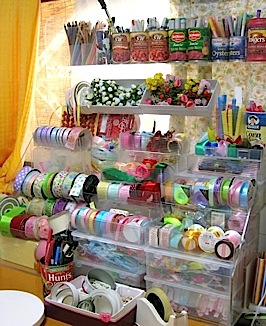 同級生のGくんが、「これ、要る?」って 写メを送って来たので、見ると、アクリル製のディスプレイ棚! 「要る」 そのときは、何に使うか考えていなかった。 で、こんなものに利用することに。 おむつケーキのリボン収納棚だ。マジで大容量! この棚は100円ショップのダイソーで貰って来たんだとか。 ストッキングの棚だったみたい。 大量のリボン収納に困っていたので、いやぁ~有り難い 手前の白い丸いものは、本物のケーキの回転台。 レースや細いリボンを、廻しながら接着するのに便利。 これは、ヨーガ講師のYちゃんから貰ったもの。 ちなみに、棚の上の方に並んでる派手なペン立て他は、 毎月行ってる岩国米軍基地内の料理教室で使った空き缶など。 毎回、こんなもの持って帰るのは私しかいないけど、 立派に役立てているので自分を褒めてあげよう~ ※ 私って、貰い物が多い? ● おむつケーキ研修 ● 昨日、神舞仲間のHちゃんが、うちに弟子入りした。 ここ2週間、長野に行ってる間とウェルカムボードで忙しかった間、 おむつケーキの注文がどっさり入っていて大変だったので、 こういうときに臨時に手伝ってくれる人がいたらいいなぁ~って 考えていたところだったからいいタイミング。 ランチ&おやつ&自作品お持ち帰り付き新人研修!Hちゃんの初作品。かわいいじゃない~彼女は頭がいいので飲み込みが速く、センスもある。 1段ケーキはもう大丈夫。 いつかは5段 よびりん♪ さんのブログから頂いて来た、 平和と希望そして、愛のシンボルマーク。 世界中に広がることを願って ーーーーーーーーーーーーーーーーーーーーーーーーー 今日の1曲 ユーリーズ・ミックス スイート・ドリームズ 1980年代前半にMTVでよくかかってた。 歌ってるアニーの目を見ていて、やっぱり欧米人は ロンパリが多いよねぇ~って独り言。 結局、顔が奥に長いから目が馬みたいに横についちゃう? で、突然思い出したことがある アメリカの美大時代、向き合った相手の顔を粘度で作る授業のとき、 何を思ったか、私の顔を作ってたスコットという親しい友人が、 突然、故意に粘度を床に落としてペッシャンコにしたのだ。 彼曰く「だって君の顔、フラットなんだもん。」 はいはい。