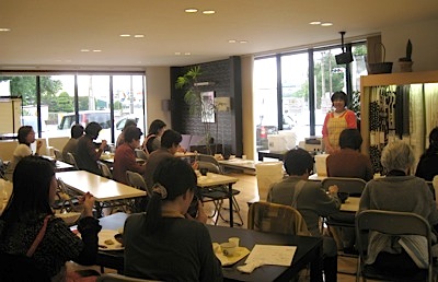 抗酸化陶板浴施設を併設するリフォーム会社「いしんの里」(周南市)で先日行われたなでし子 手抜きスローフードクッキングセミナー。 「手抜きでも美味しく」をモットーに、 栄養バランスがいい料理を紹介した。 会場はショールームなので料理教室が出来る場所ではないため、 3口のIHクッキングヒーターが1台、シンクもひとつ。 それで、私とスタッフで自宅からそれぞれ持参したトースター3台、 フライパン4つで対応した。 メニュー別に班に分かれて調理。 参加者は、若い方から年配まで19名。<朝食メニュー>変わりトースト3種海苔じゃこチーズ…食パン1枚、焼き海苔、じゃこ、ピザ用チーズ 適量カルピスチーズ…食パン1枚、カルピス原液 大さじ1、ピザ用チーズ 適量ミロバナナ…食パン1枚、バナナ 半本、ミロ 適量 10分で出来ちゃうシーフードピラフ、 漬け物で作る白和え(味付けなし)、 写真にはないけど、2分で作るおかかえのき炒め、 お椀で作るお味噌汁。 「こんなもの使うんですか!?」 「あっという間に出来ちゃいましたね〜」 「目からウロコですよ。」 と、けっこう喜んでいただけた。 すると、参加者の中に老人クラブの会長さんがいらっしゃって、 「私どものサークルでも 是非、手抜き料理を教えていただけませんか?」 とリクエストをいただいたから驚き 今年中に話がまとまれば、スピードおせち料理になりそうだ。 ーーーーーーーーーーーーーーーーーーーーーーーーーーーー ● 米軍基地料理教室 10月 ● 今回は新メンバーが3人参加。 今回はスペイン料理。手を広げているのがルイジアナ州出身のSさん。ご主人はメチャ面白い人で、私と話していると、みんなから漫才みたいだって言われる。パエリア。通常のパエリアとちょっと違って、魚介類もエビのみ。サフランじゃなくトマトソースだけど、美味しかった。かぼちゃのスープ。チキン・ブレストという、中華で言えば鶏ガラみたいなブイヨンがけっこう入ってる。サラダ。ハローウィーンの月だったので、テーブルセッティングもこんな感じ。グラスの中に入ってる赤いものは、冷凍イチゴ。