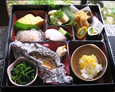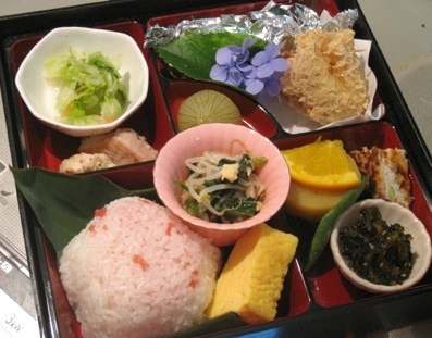 下松市久保市にある古民家「ギャラリー・野草の庭」にてなでし子ランチ5月 季節の松花堂弁当 手前から鰹の木の芽焼き、和風コールスローサラダ、 豆腐とひき肉を詰めた高野豆腐の含め煮、豆苗と桜海老の和え物、 枝豆と絹さやのバター炒め、だし巻き卵、いちぢくグラッセのベーコン巻き、 温野菜のアーモンドソースかけ、お吸い物とご飯 食後のケーキセット…抹茶パウンドケーキ&コーヒーor紅茶 撮影/オーナーKさん 私のランチは予約15名様限定なんだけど、 今月は、うち6人が私の友人だった。 例えば、英会話のお仲間と来てくれたS子さんと 私とS子さん共通の友人Y子さんも予約してくれてて、3人でびっくり。 オーナーKさん「予約を3組お断りしましたよ。」 もっとたくさん作ることが出来たらいいんだけど、 これで手がいっぱい。 中から見える野草の庭。 8人〜10人の椅子・テーブル席もある。 お客様に魚を敷いてる葉っぱが何か尋ねられたので、 ゴボウの葉ですと言うと、 「へぇ〜!ゴボウも捨てられないですね」切れっぱしを地面に植えてみたところ、こんなに大株に育っちゃった。葉っぱ20枚を切ったので隙間だらけ。 そう、私がいつも魚と肉の下に何か葉っぱか野菜を敷いているのは、 お皿代わりなのだ。 この弁当箱は内が赤いので、茶色系の料理を盛ると色合いが悪い。 だから、少しでも美味しく見えるように、くすんだ色のものを敷く。 本当はお皿付きのお重が欲しかったんだけど、 いいものは5千円はするので、まだ修行中の身では手が出ないのだ。 「なければ作っちゃおう。」これが私のやり方。 Kさん撮影のクロバナフクロウの花 来月は6月17日。 そろそろ爽やかなカゴ編みのお弁当箱にしたいな。 よびりん♪ さんのブログから頂いて来た、 平和と希望そして、愛のシンボルマーク。 世界中に広がることを願って ーーーーーーーーーーーーーーーーーーーーーーーーーーーー 今日の1曲 スリー・ドッグナイト オールド・ファッションド・ラブソング 最初、メリー・ホプキンの「悲しき天使」にしようと思ったんだけど ちょっと歌が長いのでやめた。 「オールド・・」を開くと、「悲しき・・」も右にアップしてある。 ちなみに、その下の方に南沙織バージョンの「オールド・・」も。