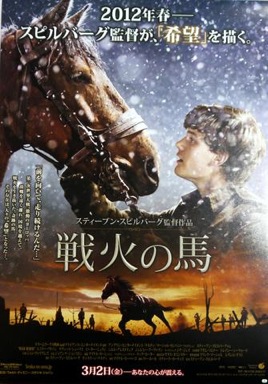 監督/S・スピルバーグ 出演/J・アーヴァイン、エミリー・ワトソン、ピーター・ミュラン 「主人公の馬に“最優秀主演男優賞”」 こんな映画も作るんだぁ・・・ 第一次世界大戦の時代の奇跡の馬のお話。 イギリスの片田舎。 農家の少年アルバートは、父親がセリで落とした一頭の美しい馬に出会う。 ジョーイと名付けられた馬は、農耕馬には向かないサラブレッド。 父親は、この美しい馬に魂を奪われ、払うお金もないのに 競り落したのだった。 間もなく第一次世界大戦が勃発。 ジョーイは騎馬隊の軍馬として売られ、そこからさまざまな人の手に渡り、 不思議な出会いと別れを繰り返す。 やがて、ジョーイは“奇跡の馬”と称され、伝説に。 ーーーーーーーーーーーーーーーーーーーーーーーーーーーーーーーー 私は、はっきり言って動物ものの映画・ドラマは苦手だ。 それは、たいていが置き去りにされるとか、飼い主との別れとか死とか、 哀しいストーリーが多いから。 だから、この映画も最初は見る予定はなかったんだけど、 幼なじみのGくんが絶賛したので、それほどに言うならと思って。 結論から言うと、実にいい作品だった。 馬が演技するのを目の当たりにした。 ジョーイの運命はいろんな人物によってゆだねられ、受け継がれ、 ときには有刺鉄線で動けなくなった体を英国兵とドイツ兵の両方から 助けられることも。 どんだけ運が強いんだ ところで、飲んだくれたイメージしかない父親だが、実は昔に 戦友を助けて国から勲章を贈られた武勇伝がある。 このパパ、ただ者じゃない なのに、戦争で人を殺したことを悔いて勲章を捨てていた。 この勲章はスカーフのような赤い隊旗なのだが、後に 映画全編を通して大きな鍵となり、深〜〜い意味を持つ。 この父親が 「人生には、最良の日と最悪の日がある。」と言う。 人から見れば無茶な散財(実際には借金)をしたのが最良の日だった。 おそらく、誰の人生にもこういう日は訪れる。 ある人は家の購入かもしれないし、またある人は思い続けた人に 清水の舞台から飛び降りる覚悟で愛を告白する日かもしれない。 そこに真心と純粋な気持ちさえあれば、結果はどうであれ きっとその人の人生に彩りをもたらす、ってことね。 この作品は時代背景が戦時中なので、どうしても悲惨なシーンがあって、 特に10代の若い戦士たちが散って行く様は哀しい。 「戦争は、すべてのものを奪う。」と、フランス人の老人が言ってたけど、 どこの国も同じだな〜 私は、スピルバーグがなぜこの時代にこんな映画を作ったのか考えてみた。 結局、一番言いたいのは「戦争の無意味さ」だと思う。 ジョーイが英国軍、ドイツ軍、フランス人の少女と、 国境も立場も越えて次々と新しい絆が生まれるのに対し、 なぜ人間だけが敵味方に分かれて争わなければならないのか。 スピルバーグがイスラエル系だからだとは思わないけど、 少なくとも、私よりは戦争に敏感な人だと思うし。 ところで、馬の演技として私が「おぉ〜」とうなったシーンがある。 それは、ジョーイと一番仲のいい黒馬がドイツ軍にいたとき。 他の数頭と一緒に、重い大砲台を引かされていた黒馬が弱って 動けないのを見ると、突然ジョーイが黒馬の前に走り出て、 「こいつの代わりにオレがやる」 っていう目で隊長を見た場面だ。 たまらなく、たまらなく脳裏に焼き付いている表情だった。 ラストは予想していた展開で、ちょっと意外性はなかったけど 泣けた泣けた。感動で。 雪解けから春の足音を間近に、こんな映画はいかが? 戦火を走る、戦場を駆ける比類なき美しい馬の物語。 よびりん♪ さんのブログから頂いて来た、 平和と希望そして、愛のシンボルマーク。 世界中に広がることを願って ーーーーーーーーーーーーーーーーーーーーーーーーーーー 今日の1曲 アメリカ 名前のない馬 馬の映画だったので・・それだけの理由。 '70年代の作品だけど、可もなし不可もなしって歌かな。 でもけっこう売れた。