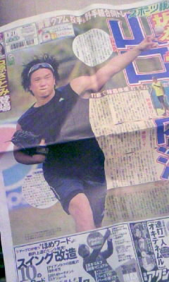 某所で、日刊スポーツに、栄養士さんが選手の体重管理?食事管理?について書いてるコラムがあって、 「鉄腕の敵は三十路の腹」 なるタイトルでぐっさんの件について記事があり、ネットには出てないというので最近の日刊を洗ったんですが、 なぜかない…|||(-_-;)|||||| やっぱり仙台だから?(ToT) あるいはいつの紙面に出てたんでしょうか?見逃してる…? あと、モバイルジャイアンツに「特選グラフ・素顔の山口鉄也」なるコーナーができて、今季の「今日のG戦士」のぐっさん写真がたくさん載ってます。何日かはあるはず(^-^)。 …しかし、「チーム阿部」いつ行くんだ…(=_=)待ちくたびれたぞ|||(-_-;)||||||←行っても何もなかったらどうしよう(ToT)