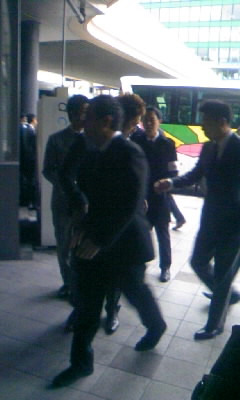 今年は行こうかどうしようか迷いましたが(あんまり楽天ファンの集団のなかに行きたくないなとかヾ(^_^;) なんか、この頃病みそう(いぁ、病んでる?)なのもあり気分転換も兼ねて行くことに。 おっきーは7月以来半年ぶりかな?とごやさいった頭で、いつの間にか現れ、しばらくバスの座席に座ってましたが、窓枠の陰になって外からは耳しか見えないような席に陣取りました。…あれは絶対「わざと」です(笑)。 そして、突然バスから降りて目の前に出現したかと思うと駅内に消え、「お茶しに?」「…トイレじゃない?σ(^◇^;)。。。」の憶測の中、日刊スポーツを手に戻ってきました。 今年は、壮行会場の駅構内は絶対例年になくごった返してると思ったし、別に見なくていいやと思い、ずっと下にいました。なので、おっきーの「往復」も結構しっかり見られましたかな。 今日、目についたのは、金刃さんの「オレンジのネクタイ」σ(^◇^;)。。。目立つ目立つ(笑)。未だ溢れるジャイアンツ愛(*^_^*) 実は、先日、某77銀行の「都市対抗出場記念ボール」というのが手に入ったので、チャンスがあったらそれに相原投手からサインもらってこよう! …と思ったのですが、第一、相原さんの顔知らなかったりするσ(^◇^;)。。。←いや、見たらちゃんとわかりましたがヾ(^_^; まあ、どちらにしてもチャンスはありませんでした。 コーチ陣のバスが一番で出発したので、用のなくなった(笑)私は人込みから脱出してしばらくぽつんと立ってたんですが、そしたら知らないおばちゃんが話しかけてきました。 「誰きてるの?マー君!?o(^o^)o」 「…いや、マー君はいないっす(苦笑)」 「あの星野さんとかいるの?しまなんとかって人は?」 「あ、楽天の人はみんないましたのでヾ(^_^;」 …昨今の仙台はこんな人で溢れてます...((((((^_^;) 写真うまく出なかったらあとで直しますので。