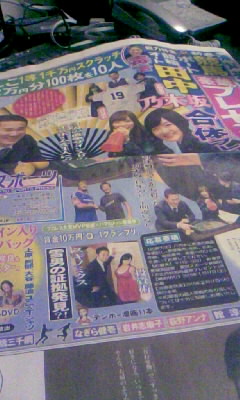 たしか去年まで280円だったような気がしますが、今年から300円にで、発売が29日だったか30日だったか忘れましたが、今朝地下鉄の駅で買おうと思ったら売店が休み きゃーーーもう売店は御用納め?会社近くのコンビニは、リニューアルオープンしてから「お上品」になったのか東スポ置かなくなってしまったし(やっぱりなかった)・・・まあ、しばらく売ってるからいいか。と思って、バス待ちしてる間に家の最寄り駅近くのコンビニに寄ったら、あった!東スポお正月特別号・・・今日発売だったか。ところが、・・・野球ネタは、「アイドルはべらせやりたい放題田中将大」と大瀬良ぐらい、あれ?巨人の巨ってどうかくんだっけ・・・・・?・・・・つまらんプロレスネタ・・・棚橋か・・・なんだよ、読むとこ、「みこすり半劇場特集」ぐらいじゃないかなんだ、つまんなかった・・・残念。なんか、これがなんだかんだいって一番面白かったかも。「世界のキタノ」になろうがどうしようが、・・・・被り物、大好きだよね・・・・