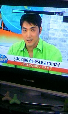 スペイン語を勉強するにあたり、教育テレビの「スペイン語講座」を見るのは当然考えましたが、初期の頃、テキストを立ち読みして、「・・・もう少し覚えてから見ないときっとわけわからなそう・・・」と思ってずっと見てこなかったのですが、先週、たまたま木曜22:25からの「テレビでスペイン語」をつけたら、なにやらおじさんがギター持って「君といつまでも」らしき歌をスペイン語で歌ってて(笑)、聞いててなんとなくわかりそうだったので一気に敷居が低くなり、毎週録画しながら見ようと思って今日も楽しみにしていました。余談ですが、「君といつまでも」は私的に原監督のイメージです。私には、「若大将」=原辰徳さて、ナビゲーターとして出てくるこの人、平岳大さんというのですが、・・・この人、誰だっけ??どっかで見たことある!超芸能人オンチの私がみたことあるんだから、・・・あれ?もしかして、メキシコ経験のある元レスラーとかじゃないよな^^;・・・「(帰宅したばかりの息子に)ちょっと、この人誰だかわかる?」「ガタイのいいアンジャッシュ児島にしか見えない」・・・おい^^;調べたら、平幹二郎さんの息子さんで俳優さんでした。・・・「見たことある」のは、お父さんにそっくりだからだ。アメリカの高校・大学出てるようなので、英語はペラペラでしょう。スペイン語は、見てると・・・結構親近感がもてそうな感じ今日のテーマは「?De que es este aroma?」(「これは何の匂いですか?」・・・文頭の逆さの「?」が出てこないのでお許しください^^;)グラナダ地方のモロッコ風テテリア(「お茶」が「Te」なので「カフェテリア」ならぬ「テテリア」(笑)。ちなみに「あなた」と「茶」が「te」で一緒の単語です^^;)で、いろいろな香りのお茶を楽しみながら、あっち風のちまき食ってましたが(笑)、ここでは「水煙草」が吸えるそうで、・・・・これはもう煙出してますが、吸ってる姿と装置?が、どうも「危ない風景」に見えるのは私だけでしょうか^^;さて、平さんに、番組のコロンビア人の女の子とメキシコ人男性の会話を聞き取ってなんていってるか答えてもらうコーナーがあったんですが、平さんも「・・・文字にするとわかるんですが・・・^^;」って言ってましたが確かにそのとおり(>
