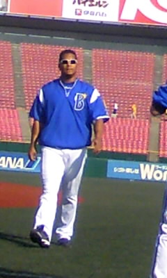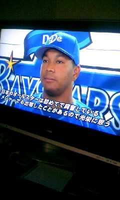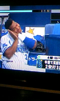 あの「バカンス」からすでに一週間経ったなんて・・・・早すぎて、年取るわけだわ6・11、楽天ーDeNA第3回戦。この日もいちばん暑い時間帯に宮城野大通りを歩いて球場へ、そして3時半に入場。ストレッチの集団にはわき目も振らずにひとり外野方向へ。ポールの下でひっくり返ってる人がいる。ロペスだ。今日も一人でここで身体を動かしていた。それをなるべく近くで「がん見」。たまに、右手の前日ぶつけられたところを気にしていた。痛いんだろうか。実は?Tiene dolores de brazo?(「腕が痛いですか?」)って「台詞」をずっと頭に入れていたんだが・・・^^;まあ、もうちょっと近づけたら言ってみたかったんだけど、大丈夫そうだしまあいいか、って。そして打撃練習とノックのために「集団」に帰っていきました。私も移動して見学。来年は、巨人もDeNAも仙台に来ない。であれば、その分別の球場で、練習が見たければできればビジターの球場で見るしかないんだけど、やっぱり「勝手知ったる」コボスタだと、早く入れて、見たい選手の動きや、それに合わせて自分はどう動けばいいか、など大体わかってるのでいいんだよね。それと大きいのが「連戦」できること。来年はこれができないのが非常に残念だ。両チームを筆頭に、セが「惨敗」した今年の交流戦、試合数が少なくてよかっただろう、って言われますが、むしろ投手力が優れたチームが有利だった去年までの方式のほうが、巨人はまだ勝てた気がします(DeNAはアレですが・・・^^;)。今年の方式だと、打撃力が弱いと勝てないと思うので、やっぱり戻してほしい気がする・・・ほんとに残念。試合直前、例によってFSのネットの前に素振りしに出てきた。それを狙って、真ん中辺の空いてる席に移動して、ロペスに向かってネームタオルを掲げてアピール。・・・やっぱり笑って手をあげて応えてくれました(>▽<)・・・この日はまだロペスと球場で「コミ」計れてなかったので、これでかなり満足さて、試合は、初回から「・・・何、やってんだ??(爆)」ってくらい、楽天の守備が乱れまくり(結局この試合楽天5失策^^;・・・まあ、楽天はこうじゃなきゃ・・・DeNAもな^^;ロペスの第一打席はチャンスで高いバウンドの遊ゴロで2点目がはいる、とりあえず打点1。2打席目は右中間へ、「いったか」と思った大飛球でしたがフェンスいっぱいで捕られる・・・まあ、ロペスの右中間への打球はそんなに伸びないので・・・東京ドームなら完全に入ってたけどね。結局この3連戦、「来日初の三塁打」「今季初盗塁」「死球でキレて乱闘寸前」など、ロペスのファンとしては実に珍しいものをたくさん見せてもらいましたが、ホームランだけは残念ながら見られず。1戦目のフェン直の当たりと、この右中間の飛球がいちばん可能性あったんだけど・・・・まあ、コボスタでは再来年までないけど、そのうちどこかでHR、見たいですね。この日は、私にHRを見せなきゃいけないと思って力が入ったのか(違)、5タコに終わって、仙台での3戦トータルでは13打数5安打、.385でした。余談ですが、翌日は「普通どおり」力も抜けて平常心で打てたのか、札幌ドームでの1打席目はホームランでしたチームの勝敗のプレッシャーがなく、本人の調子もいいので個人的なプレッシャー(「打たなきゃ代えられる」とか^^;)もなく、試合が進むにつれて「ああ、あと少ししか見ていられない・・」「これが最後の打席かも・・・」と純粋にそれが寂しかった。こんな野球観戦のしかた、私はめったに出来ないので、・・・・そういう意味でもほんとに満喫した3日間の夏休みでした。9回表、2点差で3連投の松井裕が出てきて、流れ的にも松井の調子的にも打てそうな感じがなかったけど、1戦目で松井からヒット打ってるのでコボスタ最後のヒットを見たかったけど、最後は空振り三振。。。ありがとう、エルチャモ ほんとに楽しい3日間だったよまあ、たとえ自分が「代打の代打」出されても、チームが勝てば笑ってベンチ前でチームメイトを迎える、そんな人だから、自分が「孤軍奮闘」みたいに打ってもチームが3タテ食らって7連敗で終了したらきっと本人は気分良くないだろうし、DeNAとそのファンにはほんとに辛い3日間だったかもですが(「かも」じゃなくてマジそうだろ^^;)3戦通じて代打も代走も守備固めも出されず、フル出場(それも1戦目延長12回だったから30イニングか)で打ちまくるロペスを見られて、もう去年のこと(代打のd以下略)があるから楽しいなんてもんじゃなかったわ今後、今年と来年はどこかの球場に見に行くとして、再来年、またコボスタで会いたいね「35まで日本でやりたい」って言ってくれてるので、まだ大丈夫なはず。今年・来年と成績残して、再来年もまた会えるように・・・。Hasta pronto,El Chamo・・・それにしても、最後うんざりするような交流戦ではあったけど、「お祭り」が終わってしまうと非常に寂しいのが交流戦ではある・・・「他リーグ本拠地住み」の野球ファン