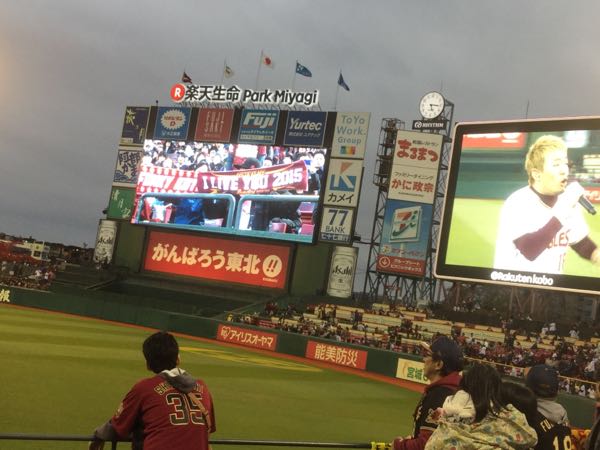 仙台の夜景が見える見晴らしの良い席。今日はレフトの楽天応援団は結構入ってるかな?いつものライトは小集団活動をしていますが、オリックスの応援団は相変わらず声がデカい(笑)3回にまた海苔本さんの「病気」がでましたが、さて・・・・。【追記】「病気」は今回「軽発作」だったため、そしておかしかったのはこの3回のみだったため、6回にオリックスの継投の隙をついて楽天が逆転、そのまま海苔本さんが完投勝利。「それぞれが自分の役割を果たして行けばチームも乗っていける」と。役割果たせとさ、みなさんしかし、楽天では(特に対オリックス戦では)ほぼあり得ない、「2時間ちょっとの散歩道」でした。昨日見に行った2軍の試合なんか戸村とハンカチの「1軍に近い(はずの)クラス」の投手が、点はさして取られてないけどgdgdで試合、長え長え 陽気もいいため危なく現地で寝越智するとこでしたが、隣に座ってた、じいさんに連れられた幼児がぐずってたおかげで寝られなくて(笑)。今日の試合が終わった頃なら、昨日の2軍戦はまだ6回だったわ。旧コボパーク行ってこんなに早く帰れたこと、あったかな?ラッキー7の「SKY」のとき、オリックス応援団が大写しになったけど、「フクラwww」っていう手書きのタオル?掲げてる人がいて、なんかしばし爆笑した・・・オーナー、また「継投ミス」だと激怒してるかね・・・いや、あなたの人事ミスでしょう(^^:)最後にちょっとだけ、19日の巨人戦に触れて沖ましょう。巨人0-5DeNA(19日)昨日、GWの帰省に向けて、i-padよりのギガ数を5に戻しに携帯屋に行ってから帰ったんだけど、すでに0-3になってて(・・・みつを・・・)そしてあっちのルーキー相手にさっぱり打てない打線。あっさり負ける。・・・ほんとに弱くなったのを実感。解説の衣笠氏の声と喋りが、「ちょっと、病院に行ったほうが・・・」と誰もが思うほどやばそうなのと、同じくらいやばいと思う、巨人というチーム。20日の巨人の試合については、明日の午前中にでも更新したいと思います(あくまで予定笑)。にほんブログ村