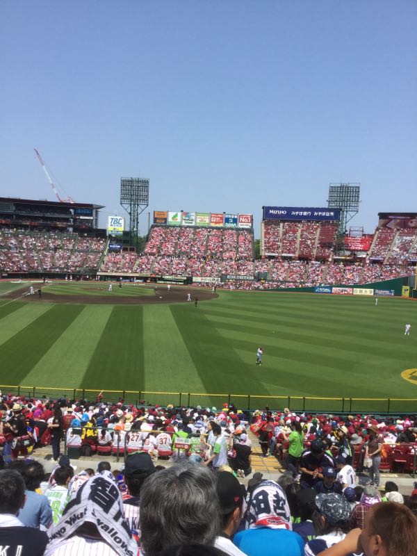 【巨人】9松原 4若林 8立岡 D石川 7柿澤 3辻 6北村 5マルティネス 2田中貴 Pヤングマン【楽天】9八百板 6村林 3山下 Dペゲーロ 5内田 8フェルナンド 7岩見 4渡辺直 2細川 P安楽せっかくチケットとってたので、今日は来てみました。これまで森林どりにくると、必ずhace buen tiempo y mucho calor・・・要するにクソ暑くなってめっちゃ疲れてたんだけど、今日はesta nublado・・・こんな曇りの快適な気候(今のところ^^:)は初めてだな・・・ああ、なんか、さっきズムサタ(G+z)で見た選手がいっぱいぐっさんがいないのが、・・・いいんだか悪いんだか。【追記】ヤバい、なんか暑くなって来たそれと、4月にはあった、内野席の上の、天井になってたネットがなくなってて、ファウルボールに気をつけなきゃいけなくなってる(^^:)巨人は、4番のインドア派の2本のタイムリー、若林のタイムリーで3-0とリード。ヤングマン、今(3回裏)初安打を打たれた。にほんブログ村