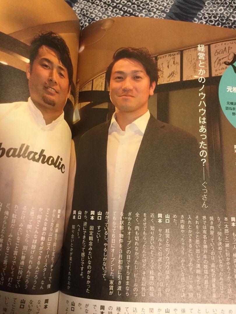 第6回「ぐっさんぽ 」、今回はぐっさんと同い年で高級焼肉店経営の岡本直也さん(元横浜ーヤクルト)との対談。引退後の第二の人生で、野球と全く関係のない業界で成功している「おともだち」にお話を聞きに行ったようです。てか、この人、よく知らない。ヤクルトにもいたようだから、うちのヤクルトファンにも聞いたが知らない模様。大体、「岡本なにがし」という中継ぎ?投手、球界に結構何人もいる印象で、ピンとこない・・・と思ったら、今年育成でSBに入った投手の中にも同姓同名がいた(笑)。ぐっさんとは、打たれた時に愚痴ったり激励されたりの関係でもあるみたい。繋がりって、58年会とかなのかな・・・それと、海外でやってた共通点とか。同じ左投手だし。焼肉店は、六本木で神戸牛、但馬牛専門でやってるようだから、高級店でしょう。野球選手が行くにはちょうどいいのかも。ヤクルトで決起集会に使ったりしてる模様。それに、ジムやエステと手広くやっているみたい。青年実業家だ。そっち方面が向いてる人なのかなと。ぐ「俺なんか、今日売り上げたお金をどうすればいいの?ってそういうところからわからない」未経験者なら大概の人がそうでしょう(苦笑)。ぐっさんは、引退後に飲食店、というのも考えたみたいだけど(接客は経験あるか、コンビニで^^:)、やはりノーハウも全くないし怖い、と。そりゃそうだな。岡本「山口はスーパースター。打たれて駄目だ・・・みたいなことを言っているけど、俺からしたら意味がわからない」こんなことを愚痴れる間柄なんだから、かなり仲良くしてるんだね。しかし、岡本さんからしたら「大丈夫だから!」としか言いようがないのでは(^^:)。実際、ほとんど大丈夫だったし。岡本「僕は、能力低かったけど、「山口鉄也」ってブランドもらえたら、抑えられると思うもん。僕はポジティブだけど実力が伴わなかった。山口は、ネガティブだけどそれを上回る技術があるつていう(笑)」ここが一番共感、というか感動した。要するに、中身が「岡本直也」でも、「山口鉄也」なことにしてマウンドに上がれればきっと抑えられると思う、ってことか。・・・ぐっさんは、今になってもこういうことを普通に周りの人が思ってるって、信じられないもんなのかな。そのくらい、凄い人なのにねにほんブログ村