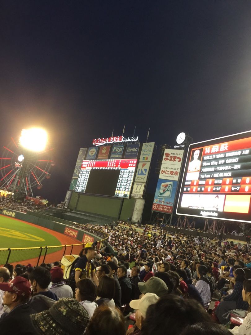 どうやら雨も降らなそうだし、海苔本さんの復帰戦だそうだし、リーグ戦再開後初めて球場へ。なんと、楽天が5-0で勝ってるではないですか!!【追記】あのまま楽天が6-1で勝ち、10連敗でストップ。やっぱり、私が行くと、真剣に応援してた巨人戦と、ファンキー加藤氏が来てた試合以外は楽天が勝つみたいだ、今季は。9日の巨人戦については、球場のwi-fiがさっぱり機能してなくて動画でおっさんの踊りしか見られず、帰宅後に布団でGストリームで見てたんだけどつけたまま寝たらしく(なんか気がついたらおっさんが踊ってた気が)、肝心なところを見てないので、見てから改めて書くことにします。にほんブログ村